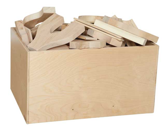 This 4-sided Block Bin is the perfect size for collecting loose blocks. All wooden surfaces are birch plywood with a exclusive Tuff-Gloss UV finish. Fully rounded corners and edges for additional safety. Locking casters provide mobility.
