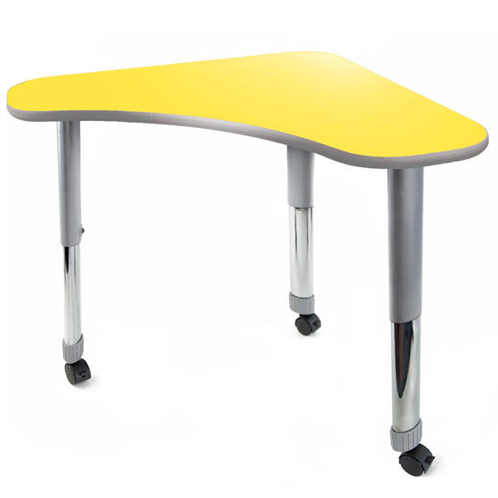 The perfect student desk for a mix of tradition and innovation in any classroom. Various shapes available can be reconfigured into collaborative group set ups and optimize space usage! The high pressure laminate desktop is designed to be durable for everyday use. This model comes in the unique delta desk shape, great for creating collaborative classroom layouts with modern style. Equipped with standard nylon swivel glides or optional locking casters, it's a breeze to move and rearrange these desks.