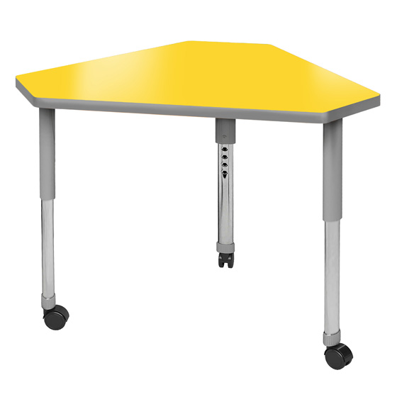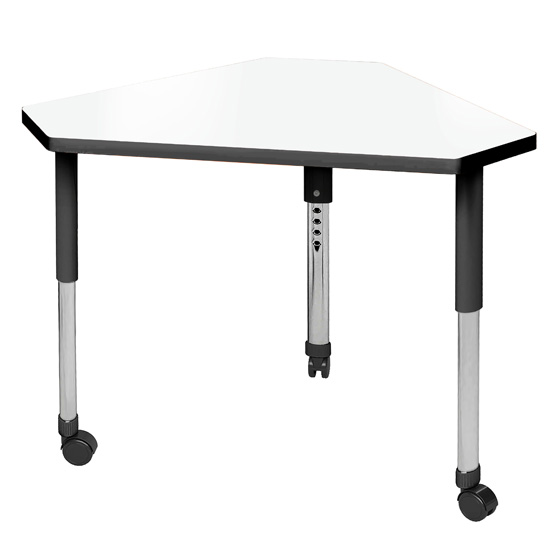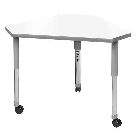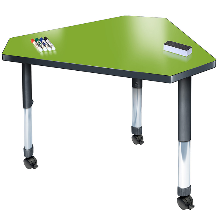 The perfect student desk for a mix of tradition and innovation in any classroom. Various shapes available can be reconfigured into collaborative group set ups and optimize space usage! The dry erase tabletop makes the perfect interactive canvas – ideal for brainstorming, doodling, or taking class notes. This model comes in the triangular pinnacle desk shape, great for creating collaborative classroom layouts with modern style. Equipped with standard nylon swivel glides or optional locking casters, it's a breeze to move and rearrange these desks.