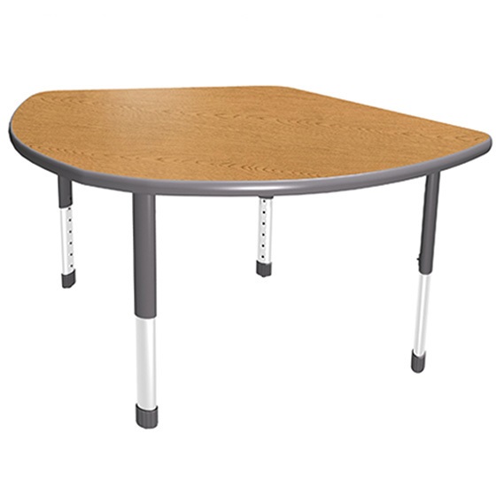 The perfect student desk for a mix of tradition and innovation in any classroom. Various shapes available can be reconfigured into collaborative group set ups and optimize space usage! The high pressure laminate desktop is designed to be durable for everyday use. This model comes in the unique pie desk shape, great for creating collaborative classroom layouts with modern style. Equipped with standard nylon swivel glides or optional locking casters, it's a breeze to move and rearrange these desks.