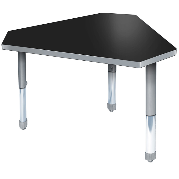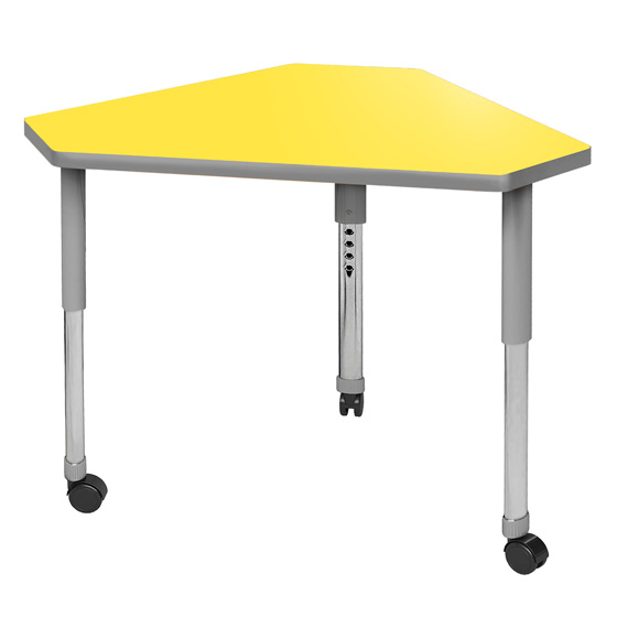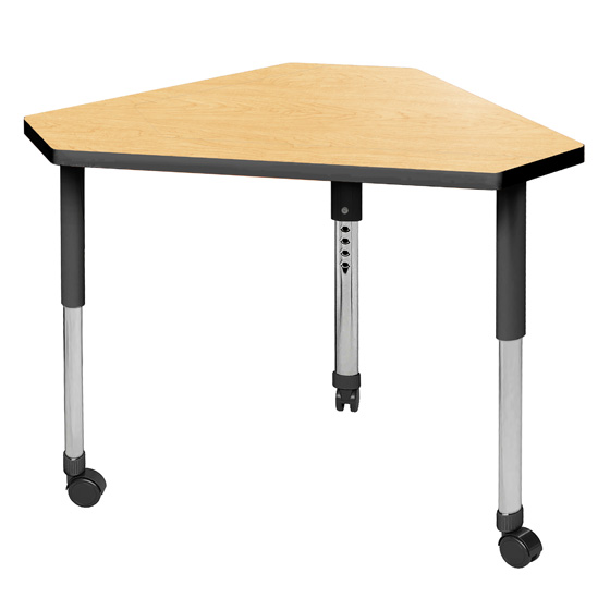 The perfect student desk for a mix of tradition and innovation in any classroom. Various shapes available can be reconfigured into collaborative group set ups and optimize space usage! The high pressure laminate desktop is designed to be durable for everyday use. This model comes in the triangular pinnacle desk shape, great for creating collaborative classroom layouts with modern style. Equipped with standard nylon swivel glides or optional locking casters, it's a breeze to move and rearrange these desks.