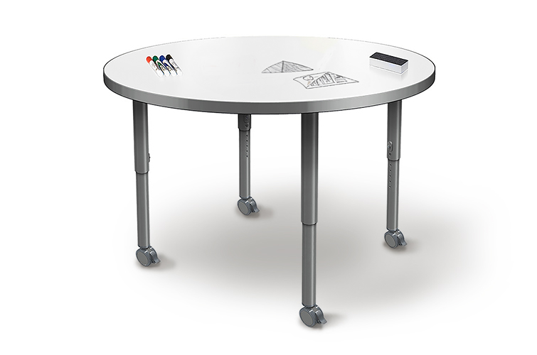 Transform any space into an interactive idea hub! The Aero Round Dry Erase Table redefines collaboration by merging a sleek, modern design with unmatched functionality. The dry erase tabletop makes the perfect interactive canvas – ideal for brainstorming, doodling, or taking class notes. The classic round shape naturally brings people together, fostering open conversation, spontaneous thinking, and creative exchange. Equipped with standard nylon swivel glides or optional locking casters, it's a breeze to move and rearrange these tables.