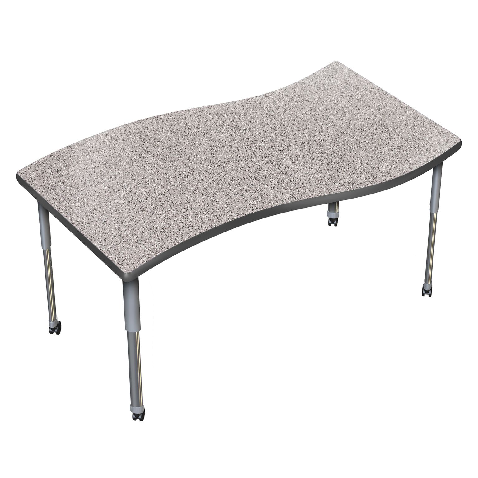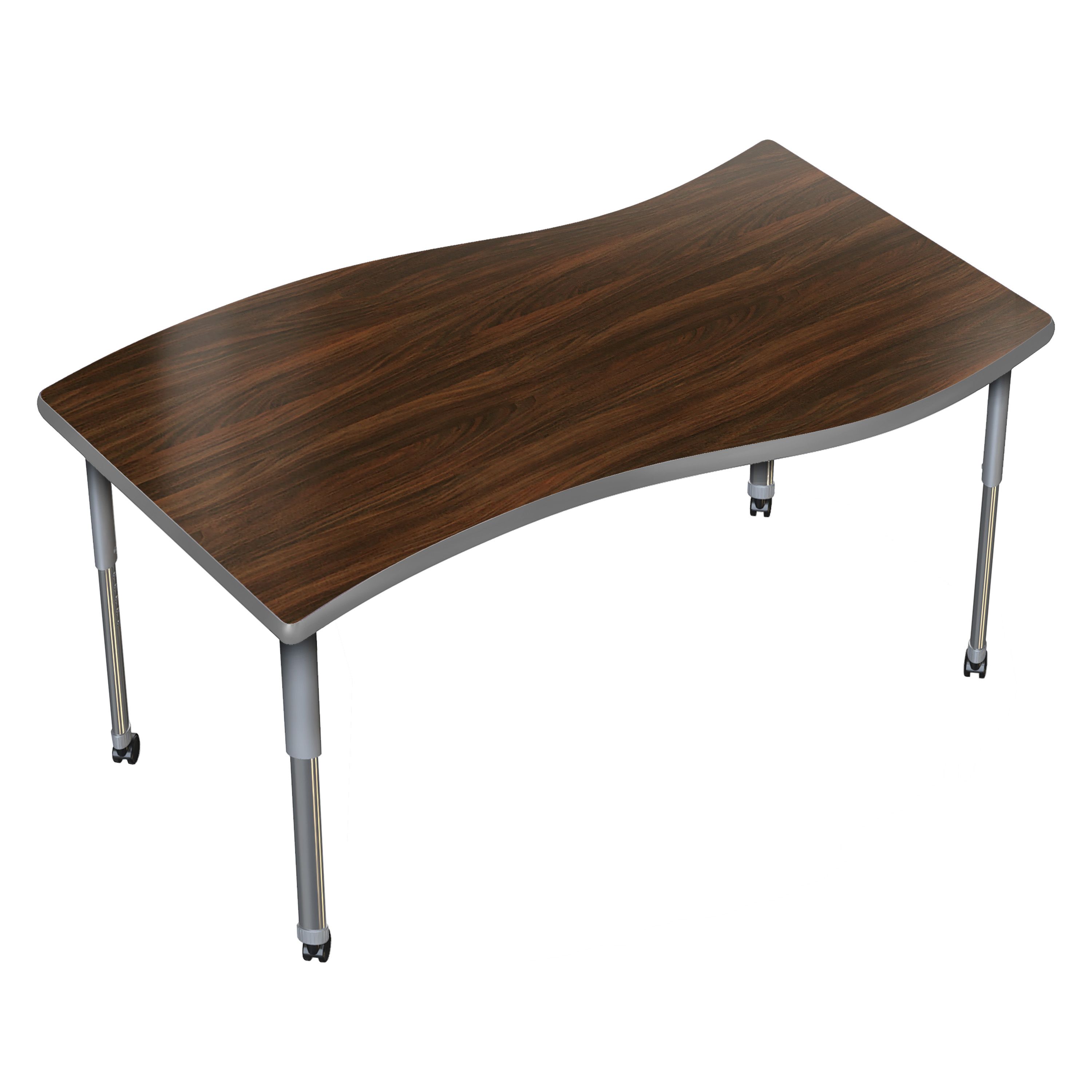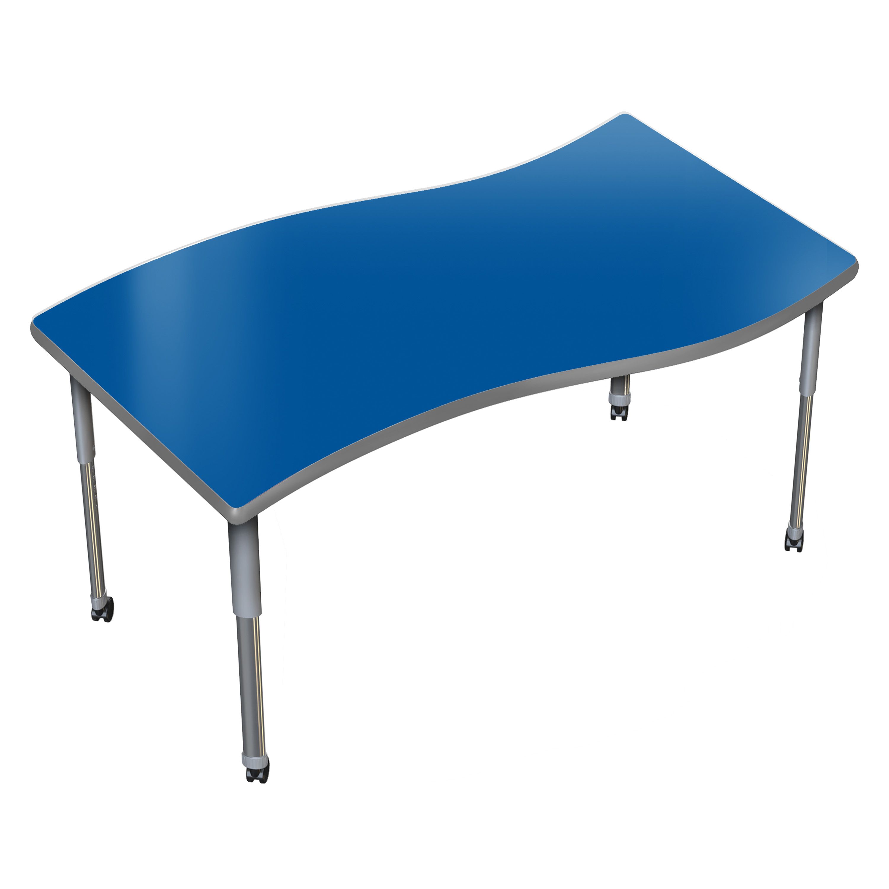Transform any space into an interactive idea hub! The Aero Surge Activity Table redefines collaboration by merging a sleek, modern design with unmatched functionality. The high pressure laminate desktop is designed to be durable for everyday use. The wavy surge shape naturally brings people together, fostering open conversation, spontaneous thinking, and creative exchange. Equipped with standard nylon swivel glides or optional locking casters, it's a breeze to move and rearrange these tables.
