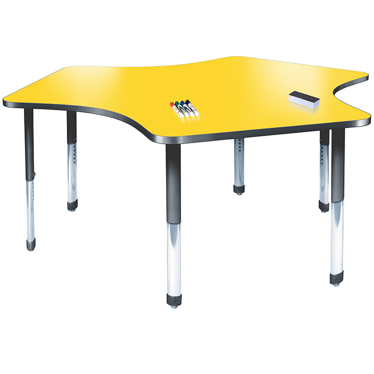Transform any space into an interactive idea hub! The Aero Team Dry Erase Table redefines collaboration by merging a sleek, modern design with unmatched functionality. The dry erase tabletop makes the perfect interactive canvas – ideal for brainstorming, doodling, or taking class notes. The unique team shape naturally brings people together, fostering open conversation, spontaneous thinking, and creative exchange. Equipped with standard nylon swivel glides or optional locking casters, it's a breeze to move and rearrange these tables.