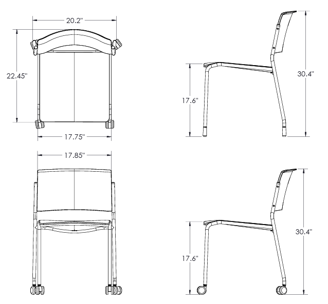 CLASSROOM BUNDLE INCLUDES: (20) AKT 4-Leg Glide Chairs, (1) Akt Stacking Chair Cart