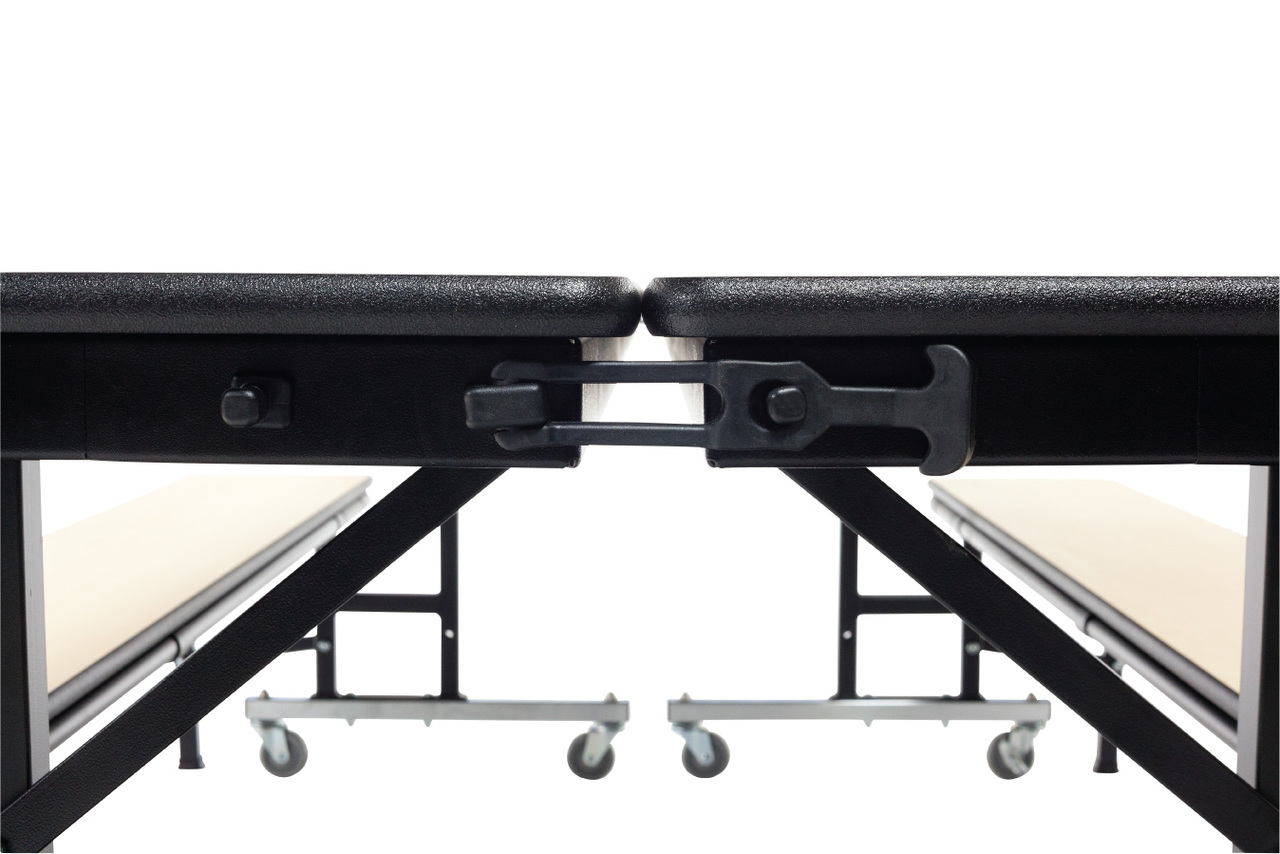 AmTab’s mobile convertible bench tables are used every day throughout the world in multi-purpose environments! These bench tables are designed with heavy gauge steel frames and wide DynaGrip glides that protect floors and keep the table lasting longer in high-impact areas. Included coupling devices allow you to link multiple tables together while short leg caster beams allow for more leg room. Sitting on heavy duty, double-ball bearing casters that leave no marks on the floor and make it easy to fold and store the table. Great for high traffic, multi-purpose environments with their compact, mobile design.