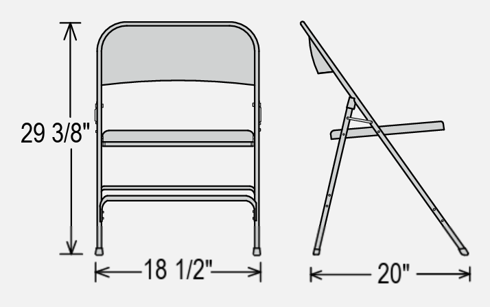 These all-steel institutional-grade standard folding chairs feature a heavy-duty powder-coated tubular frame. Double-riveted U-braces on the front and back provide additional support along with the single-hinges. The seat has a waterfall-style edge designed for comfort. The contoured backrest is electromagnetically tack-welded to the frame and features curled safety edges. Color matching V-Tip stability plugs provide additional reinforcement when the chair is opened, assisting in easy set-up and take-down. Standard glides help to prevent floor damage and are replaceable.