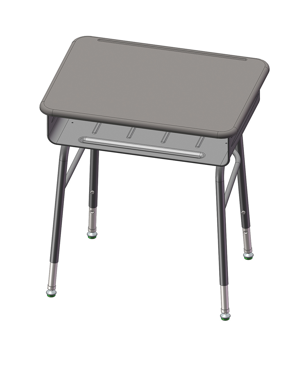 The Aptitude desk is the ideal balance of design, function, and versatility. Built solid the 400 series uses inside-holding glides mounted into precise-fit, locking-screw inserts. The frame is all-tubular with an unrestricted entry design and a standard chrome finish. The one-piece, seamless, deep drawn book box is an open front design and attached to the frame at five different points. Guaranteed strength and stability. The standard inserted U-brace connects all 4 legs for solid support.