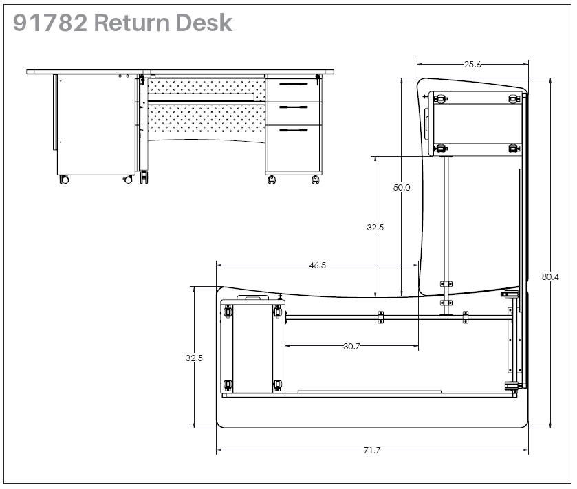 Creating your ideal workspace is a breeze with the flexible design of this modular return desk! Featuring a durable high pressure laminate top with a platinum base to add style to any space. Included are two pedestal cabinets, each with three locking drawers for plenty of supply and file storage. Pair with other Avid products to create a cohesive space! Optional glides include spacers to match height of casters.