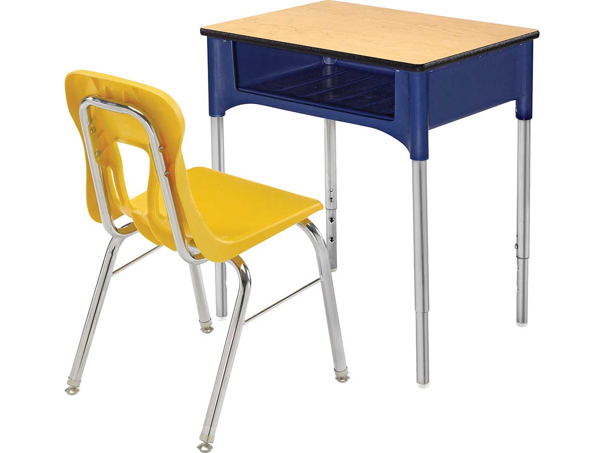 The Capella Open Front Desk High Pressure Laminate Top with Plastic Book Box is a perfect addition to any classroom. The adjustable legs are securely locked into the molded book box. This Capella desk features an exclusive built-in name tag holder. Dyna Rock Edges are a virtually indestructible edge and the most durable edge available. Provides an incredibly tough edge to take hard everyday abuse without damage. Seals the tabletop and bench edges for sanitary purposes, Allows for easy clean-up and maintenance. Proven track record for long-term durability. Resistant to bacteria and moisture. This edge bonds to the core material and makes the edge watertight.