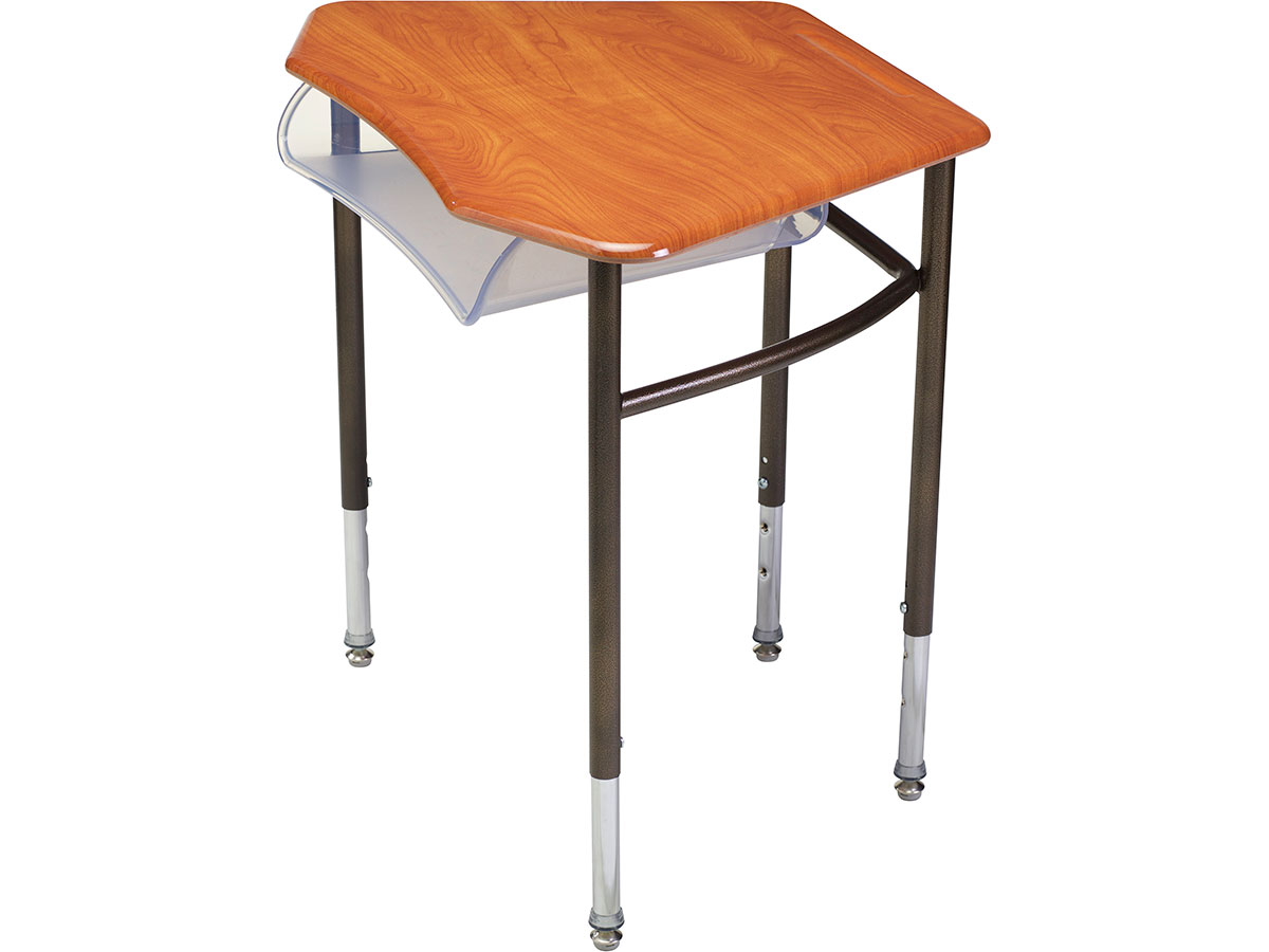 The Collaborative Series Desk features a spacious work surface mounted to an exclusive rugged steel frame. Intentionally designed for independent study, teacher centered class activities and group collaborations Group 3 desks together for a half circle, 6 desks together in a full circle that takes only 6’ diameter. With multiple storage add-on accessories available, this desk is the perfect fit for any learning environment.