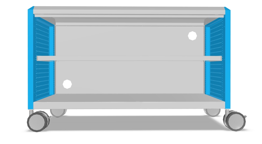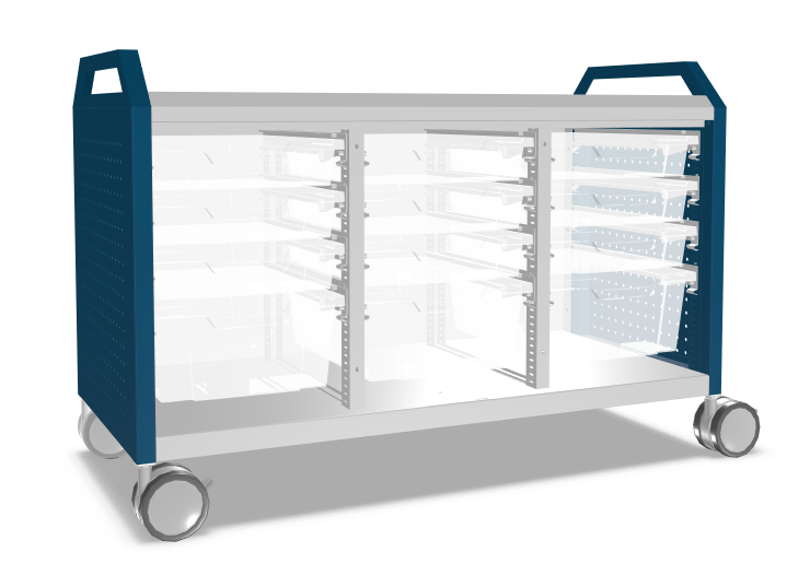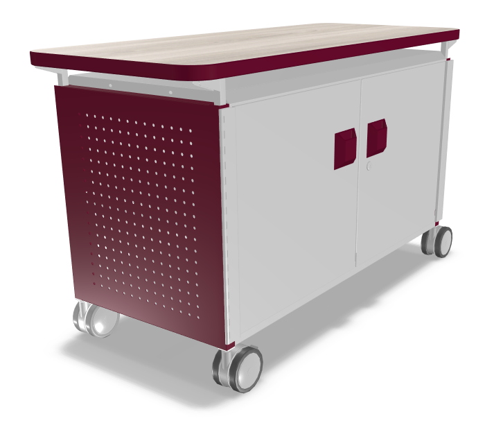 Offering maximum activity flexibility for your classroom! Designed to allow for space, movement, storage and adaptability, this mobile storage cabinet provides customized organization to your learning space. Featuring pegboard side panels for hanging classroom tools and materials. Constructed entirely of powder coated steel and mounted on non-marking casters for ease of mobility.