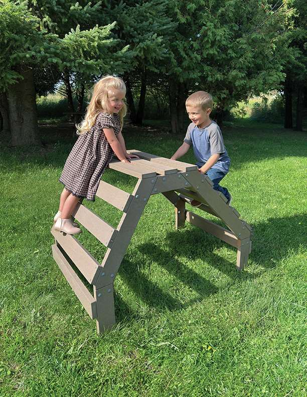 Movement during playtime is essential for child development, especially for the vestibular system, which helps control balance, coordination, and spatial awareness. The Climber helps to develop gross-motor skills by providing PreK and kindergarten-aged learners a place to explore by climbing! Constructed of recycled plastic lumber for a long, no-maintenance lifecycle because it does not rot or rust like wood and metal. The recycled plastic does not get hot or splinter, making it comfortable to sit on; it's a sustainable product as well. It is made with a combination of plastics that would have been sent to the landfill or recycling bin!