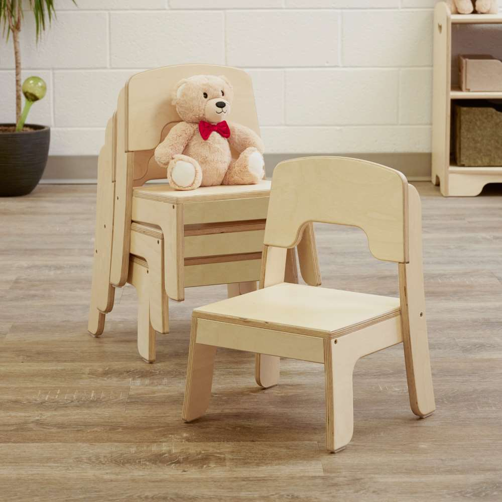 A durable and comfortable seating solution for early childhood spaces! Carefully designed, this wooden chair is ready for rugged use yet features a lightweight construction and is easy to clean. The shaped backrest makes picking this chair up and moving it more comfortable for educators and custodians, plus the chairs can be stacked up to four high, regardless of their size!