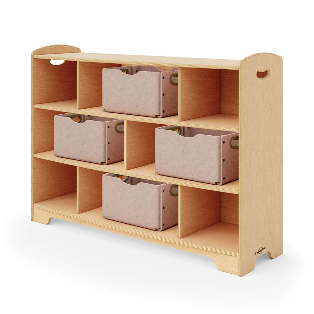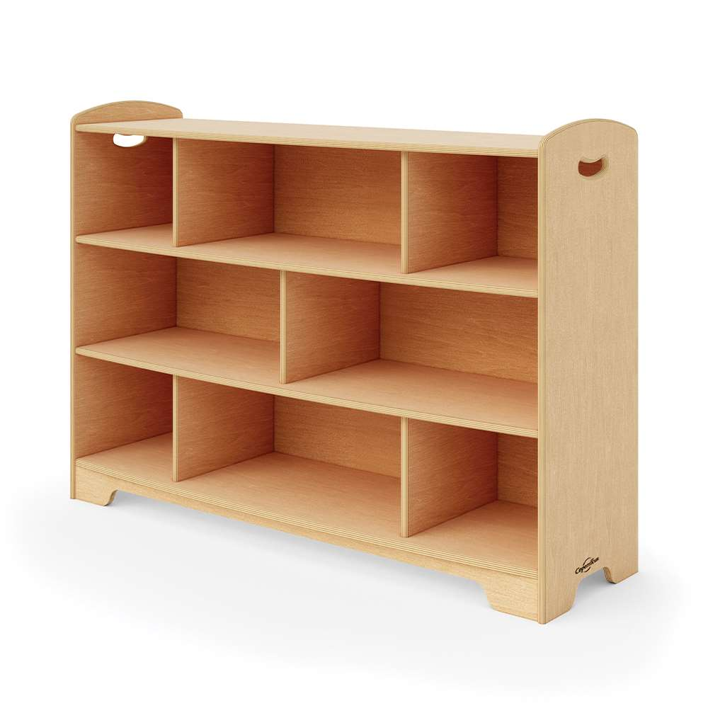 No early learning space is complete without shelving! This three level shelf is designed for versatility and stability in classroom environments and works well as a stand-alone unit or combined with other Copernicus Seoras Shelving to create an almost limitless number of classroom configurations! The smile-shaped handles offer an easier, more ergonomic way to move the shelf when needed. The shelf can be used to build room dividers, reading corners, or simply placed against a wall.