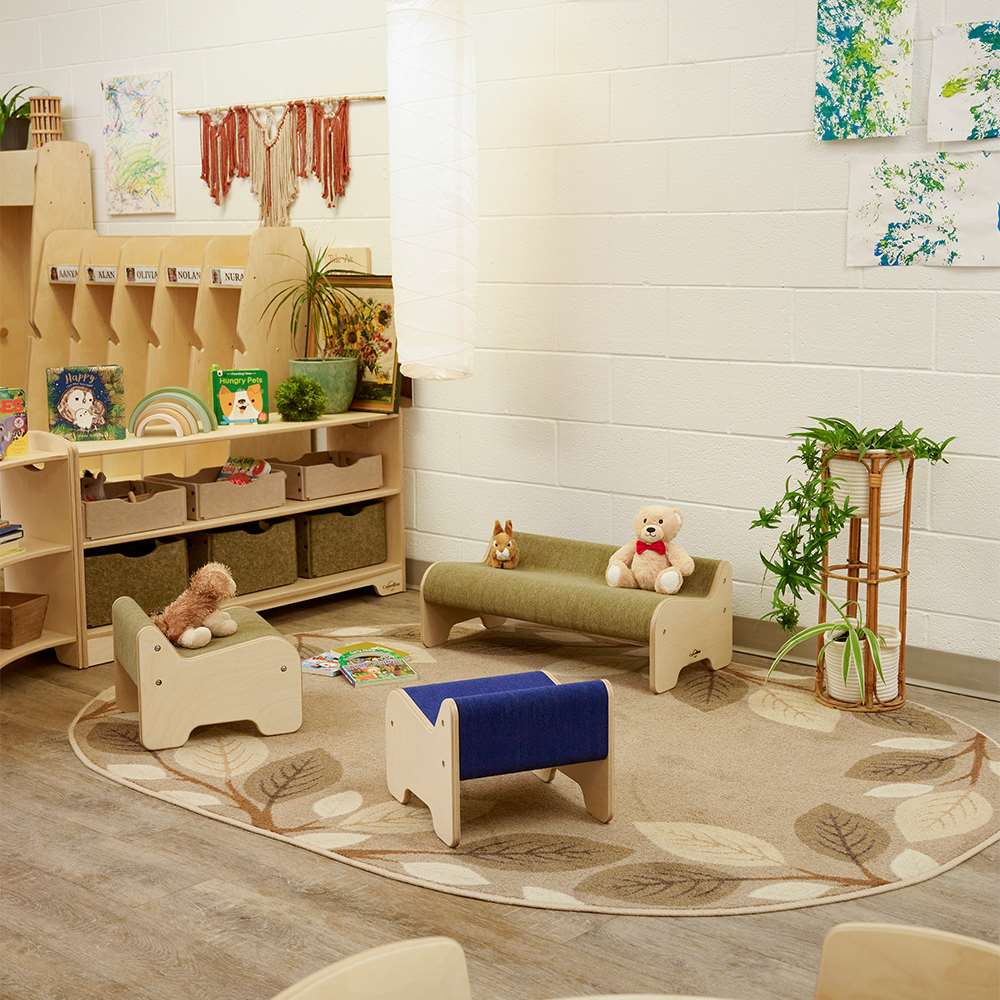 This unique bench is designed specifically for young learners! Its Softouch design offers a tactile element to any early childhood space. The bench features a contoured back and ergonomic design constructed from Softouch acoustic paneling with a birch frame and internal steel supports for durability. Children can grab a comfy seat or climb on top for play time. It's durable enough for kids and sturdy enough for even educator's to sit on! This is the perfect bench for special or occasional seating, dramatic play, and cozy areas!