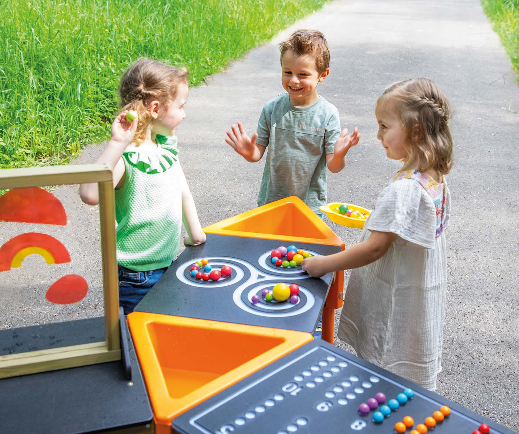 Where nature becomes a creative place! This Activity Table "Starter Set" is perfect for muddling, crafting, and other hands-on activities! Adaptable to each environment, this practical and versatile table line offers much more than traditional play tables. The expandable nature table system offers an endless number of play possibilities and can be used both indoor and outdoors. Winter or bad weather? No worries, the creative play tables are also perfect as craft tables with storage tubs for pens, modeling clay, and other craft materials. Included in this set: 3 Activity tables / 1 Gameboard "Rainbow" / 1 Gameboard with "Weaving Frame". All other accessories not included. Play. Experience. Learn.