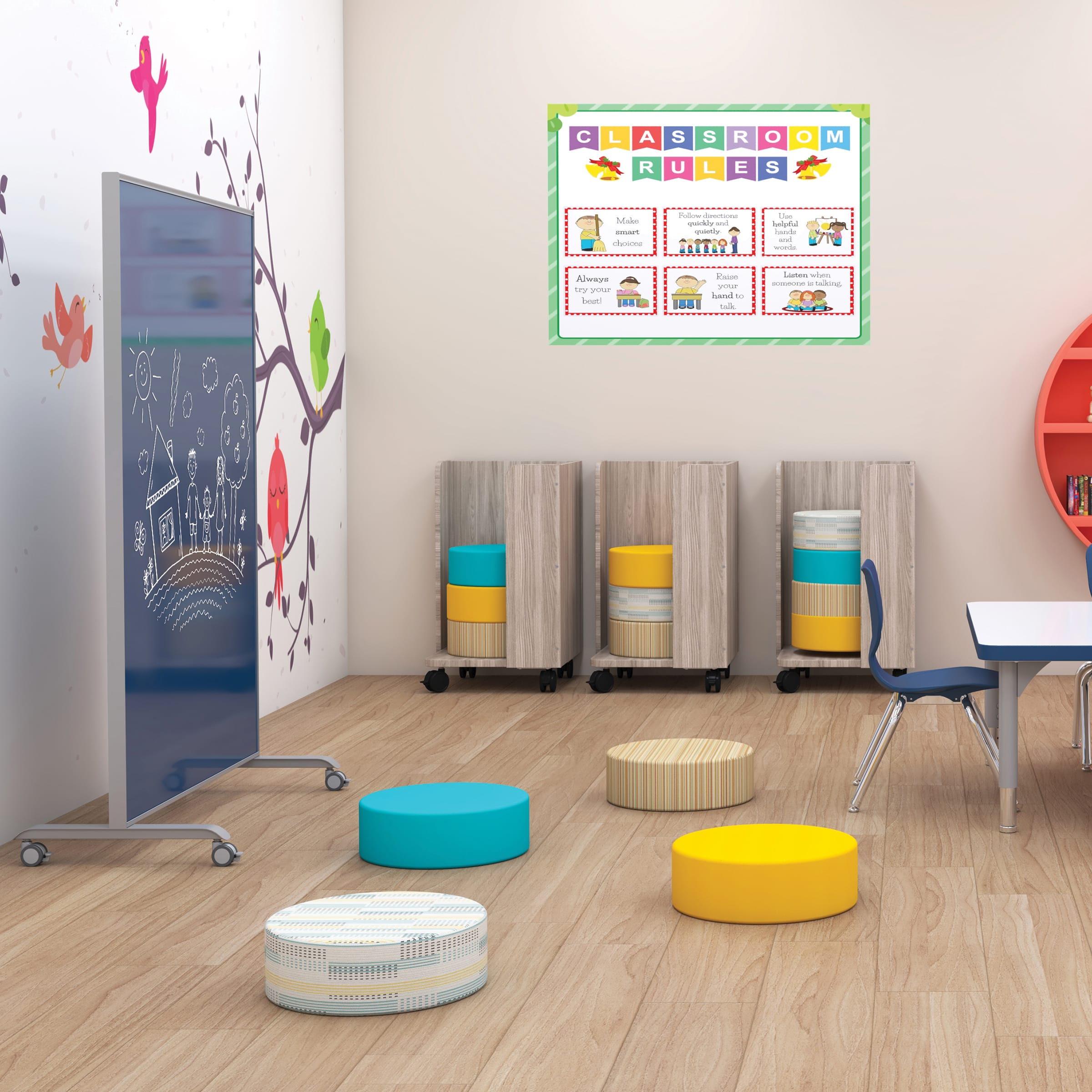 Keep your classroom neat and tidy with this mobile soft seating cart designed specifically for your MooreCo Dots. Featuring a fashionable laminate surface and dual-wheel casters, half locking, for easy mobility. This cart is also compatible with various other seating pads.