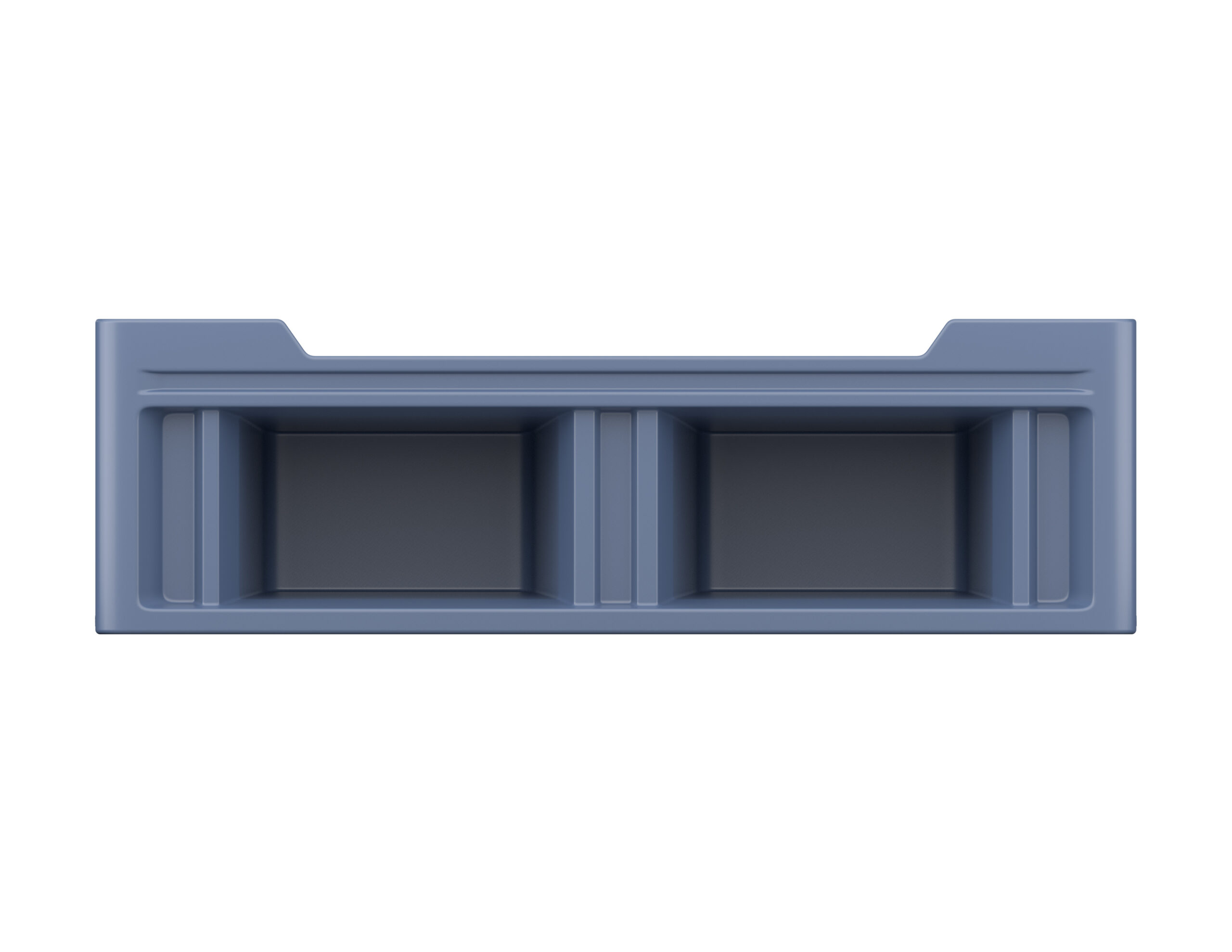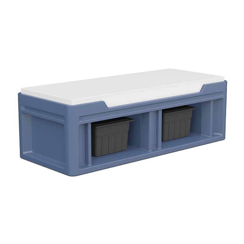 A rotationally molded, one-piece bed frame with a space saving design that is engineered to withstand continuous use in rigorous environments. This model features molded-in side compartments for personal storage. Mattress sold separately.