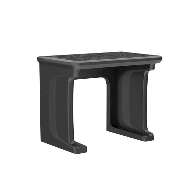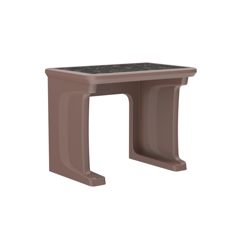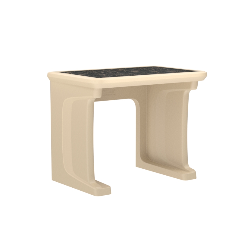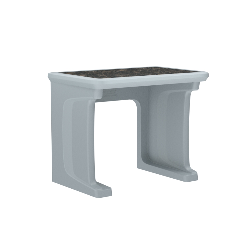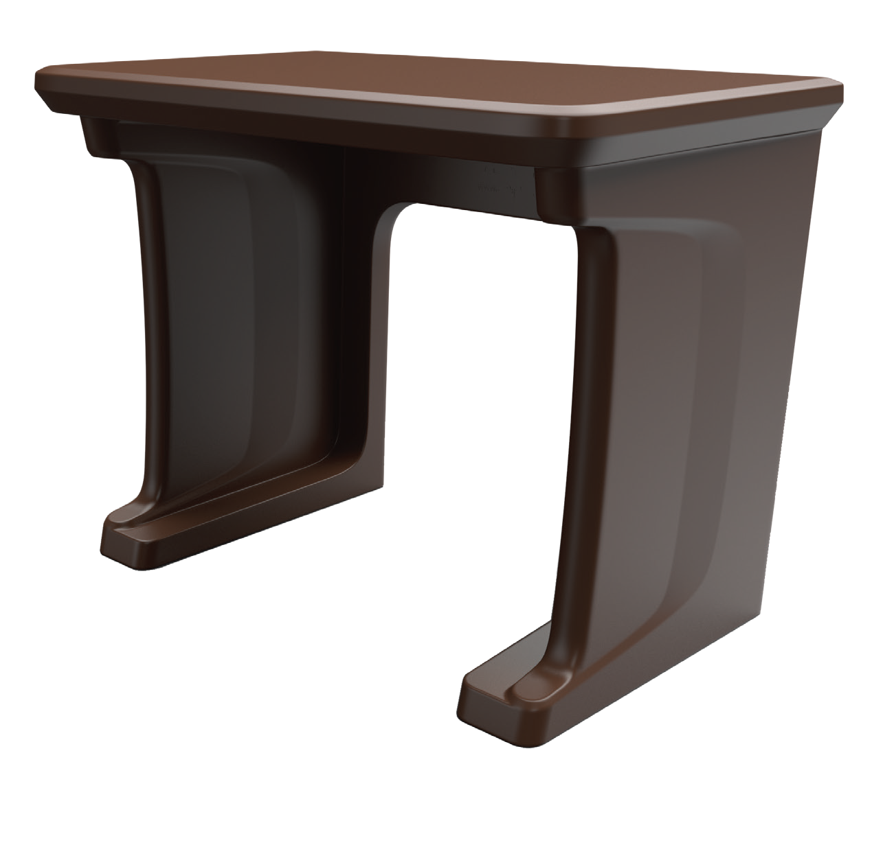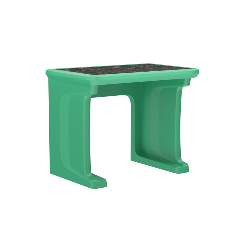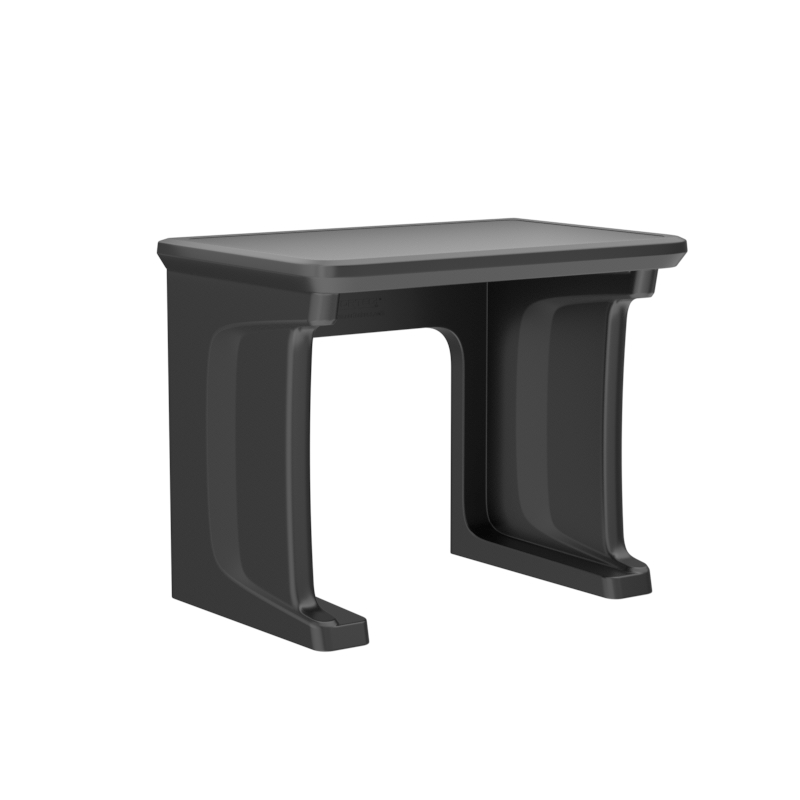 This standalone desk features a one piece, rotationally molded design for enhanced durability. Concealed pilot holes allow for bolting the desk to the floor if necessary.