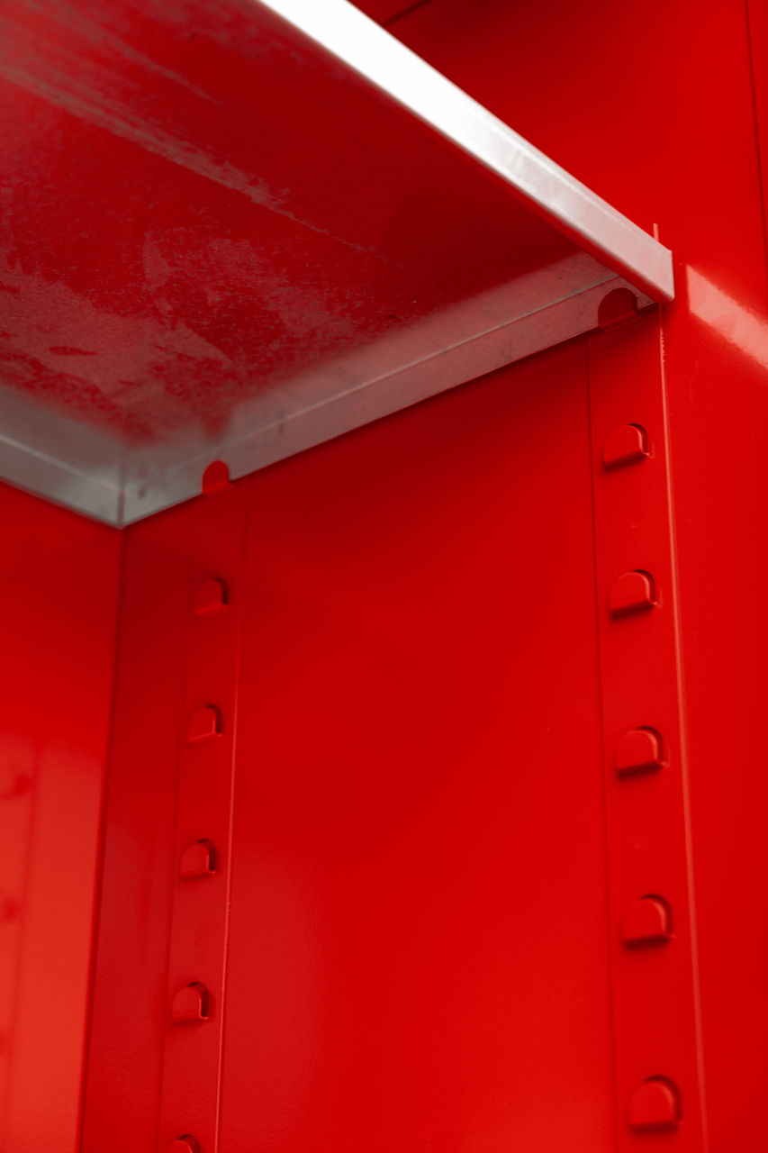 FireKing Flammable Safety Cabinets are designed to meet key safety standards and provide reliable, secured storage in various environments. Constructed with reinforced double-wall 18-gauge steel and features a thermal air gap on all sides, these cabinets deliver exceptional fire resistance. For long-lasting durability, each cabinet is finished with a high-gloss powder, corrosion-resistant powder coating and features heavy-duty full-length piano hinges for smooth and consistent door operation. Doors are secured with a flush-mounted paddle handle and keyed cam lock for maximum security. Safety and functionality are a priority for both gallon models, featuring dual flame arrestors with fire baffles, a grounding lug, and adjustable galvanized steel shelves. For spill control and stability, cabinets feature four galvanized leveling feet and a raised, leakproof containment basin. Trilingual warning labels ensure clear communication of safety hazards. A trusted solution for flammable liquid storage in industrial, commercial, or laboratory environments, these cabinets are certified to meet UL/ULC 1275, OSHA, NFPA, and ANSI standards. Each FireKing Safety Cabinet is Union-made in the USA, backed by a ten year warranty, and covered by FireKing's Free After-Fire Replacement Guarantee.