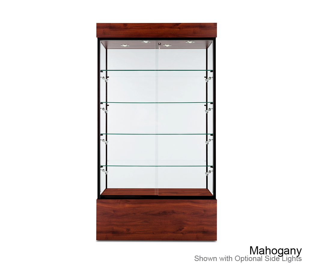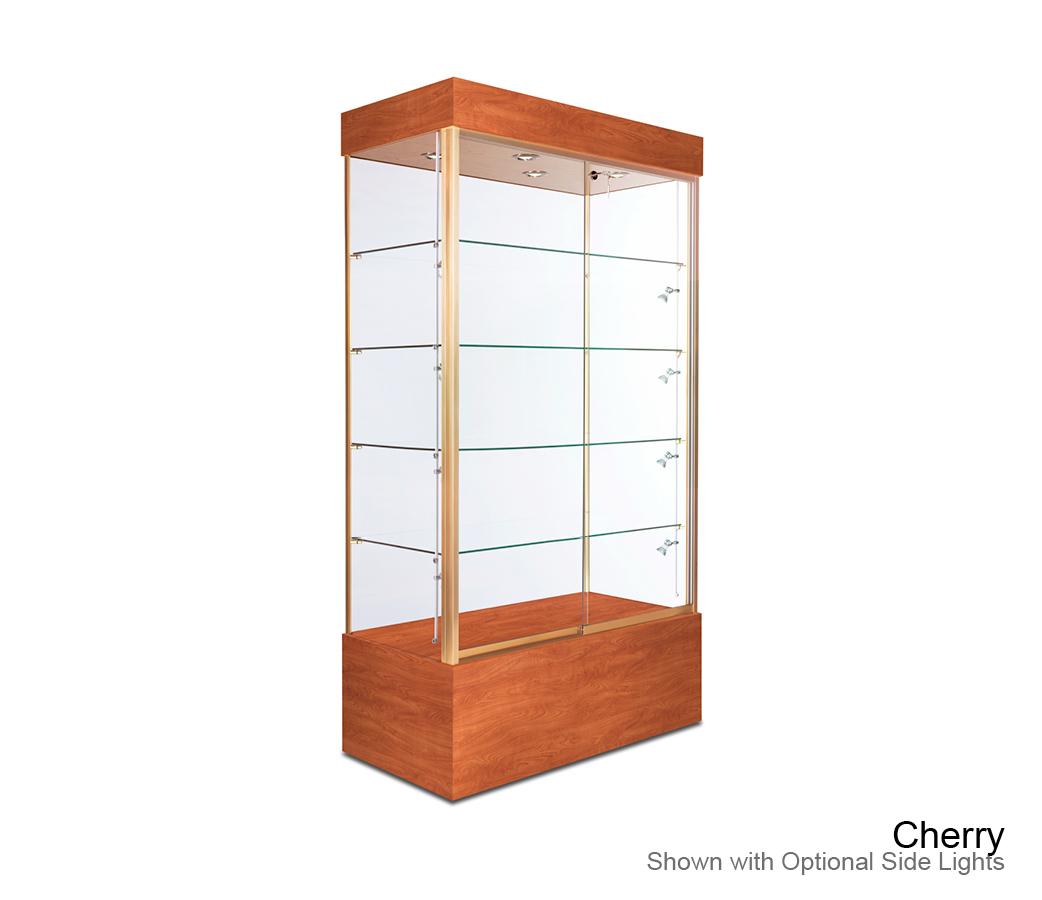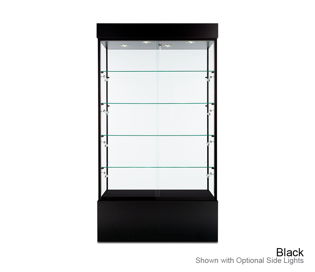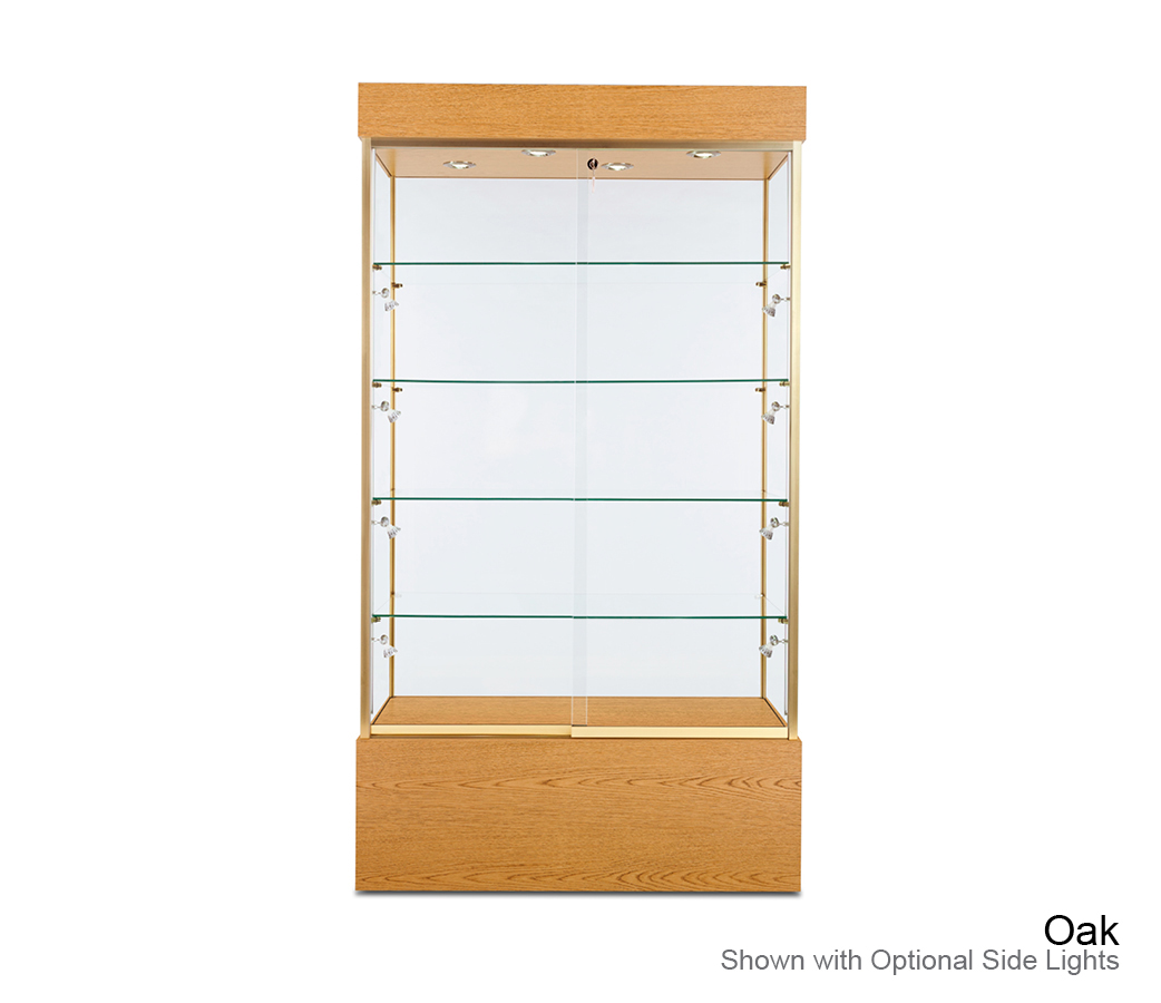 A classic floor display that adds an interesting look to your space while it highlights your awards, trophies, or products! All four sides are tempered glass, making your space feel larger while offering an unobstructed view of what's on display. Each glass shelf is fully adjustable to create a large enough space for any objects. LEDs in the top of the case provide accent lighting. The sliding glass doors include a lock for security.