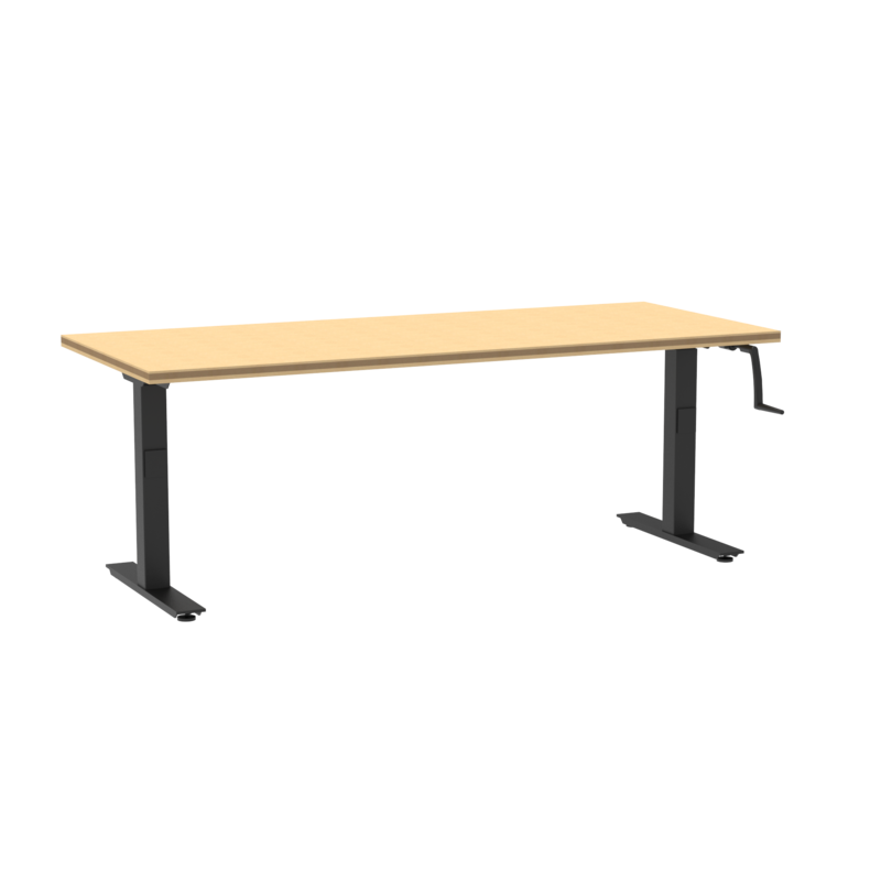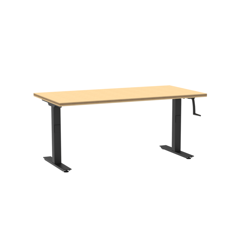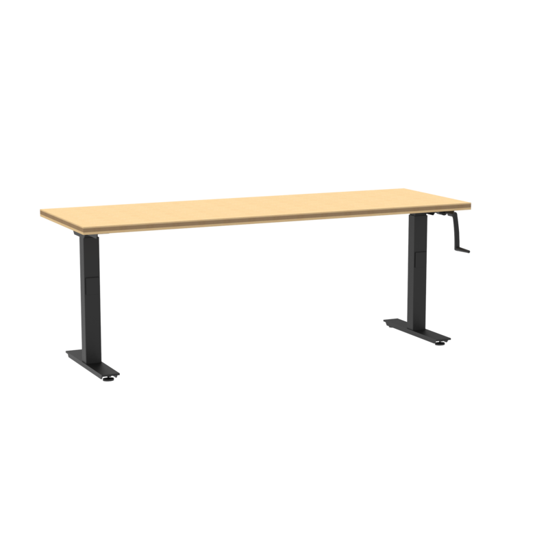 An ergonomically designed adjustable height table with ADA compliance and a durable build. Featuring a new and improved hand-crank frame, you can now easily pull-out the recessed handle and crank to adjust the work top higher or lower. When done, you can retract the handle under the top. The ShopTop provides a durable, non-conductive, composited wood surface for electronics or wood working. Black powder-coat protects the steel frame from rust and scuffs. Leveling feet included. Also available in ChemGuard and High Pressure Laminate tops.