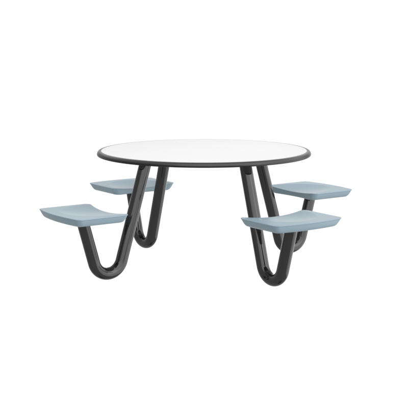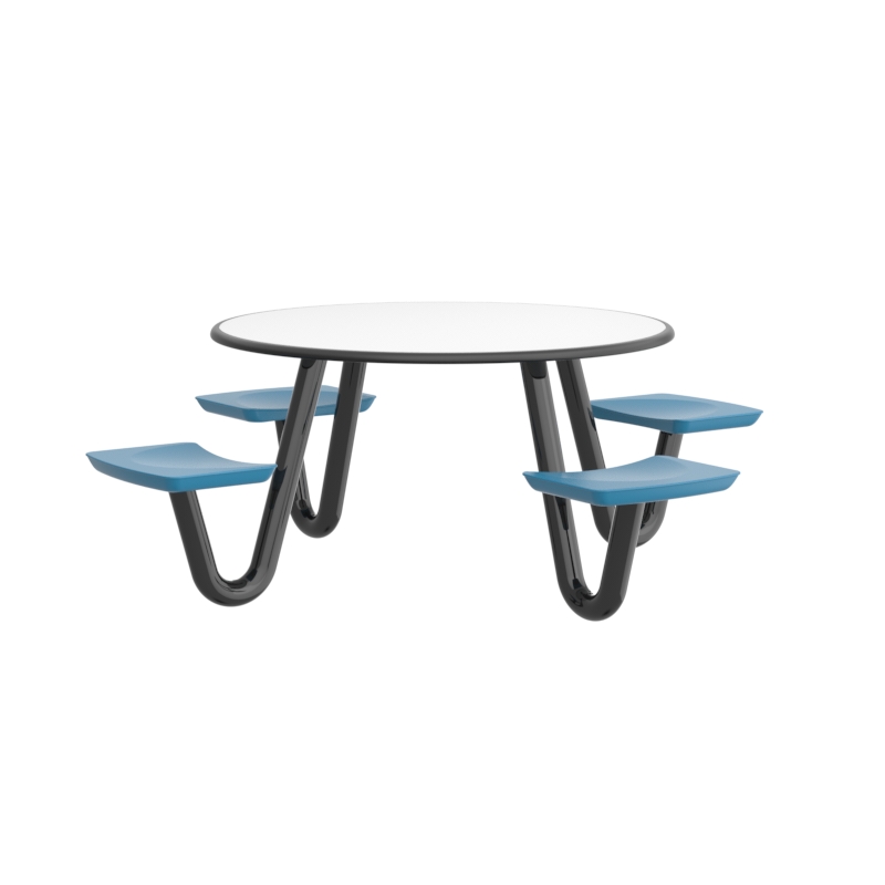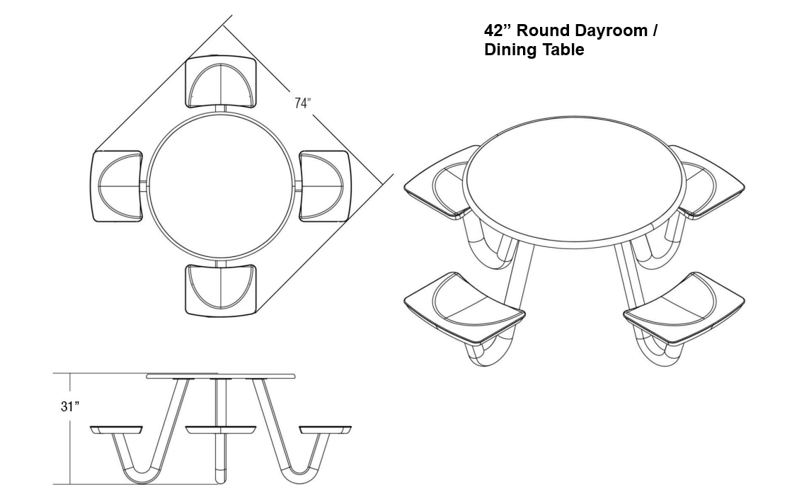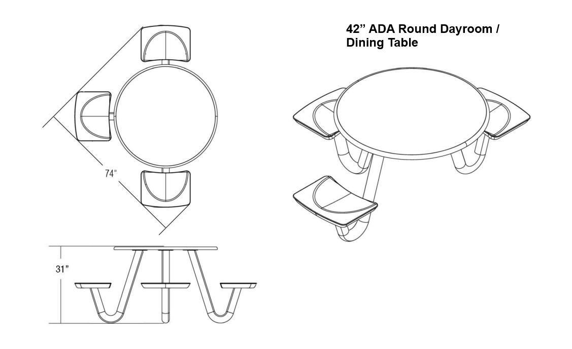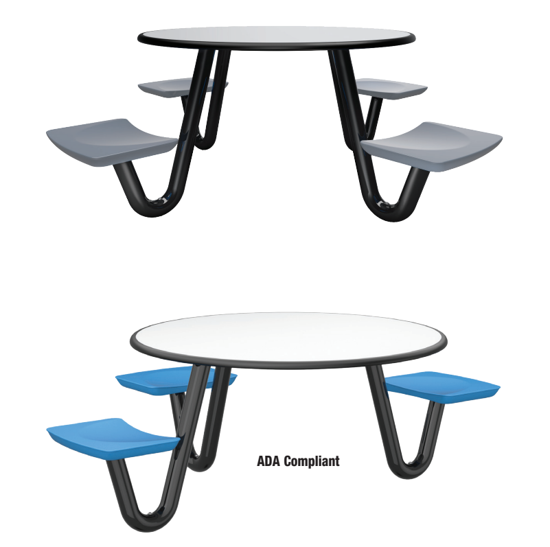 This heavy-duty table is perfect for continuous use in any dining or social environment. The rounded edges amplify both comfort and safety for each user. For ADA compliance, the table can be manufactured with one less leg to create the necessary space.