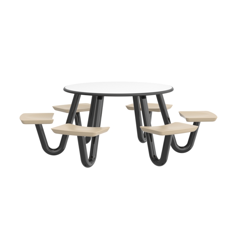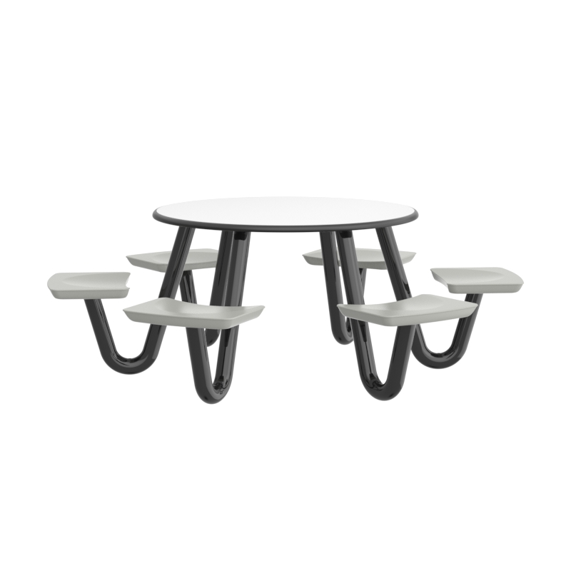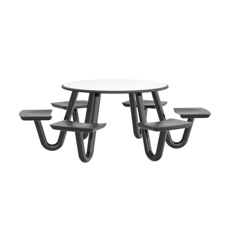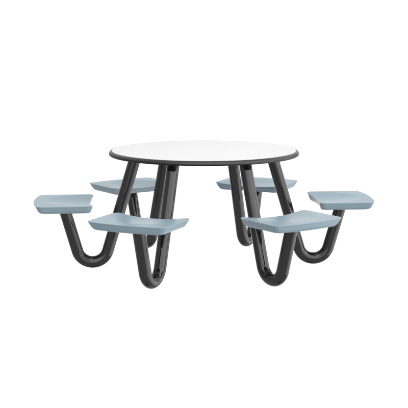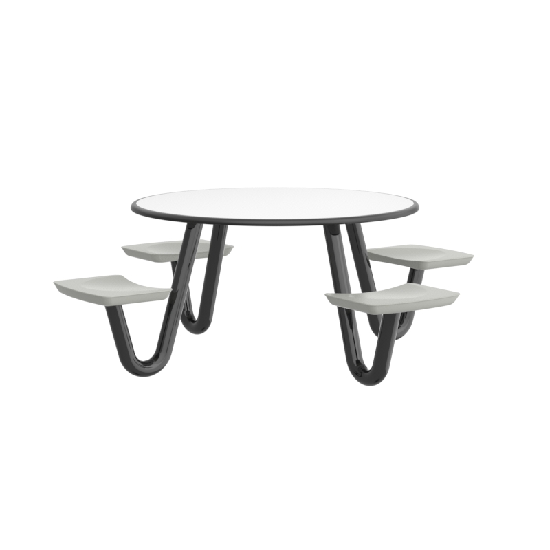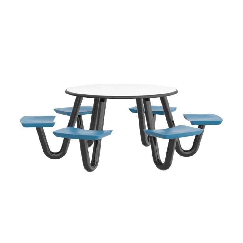 This heavy-duty table is perfect for continuous use in any dining or social environment. The rounded edges amplify both comfort and safety for each user. For ADA compliance, the table can be manufactured with one less leg to create the necessary space.