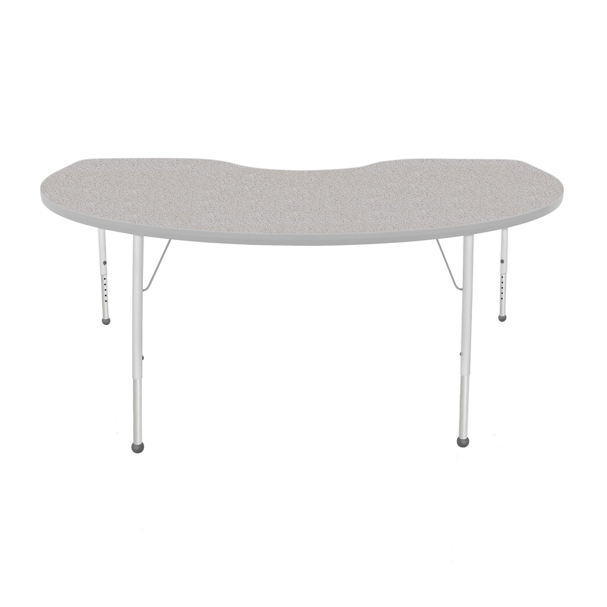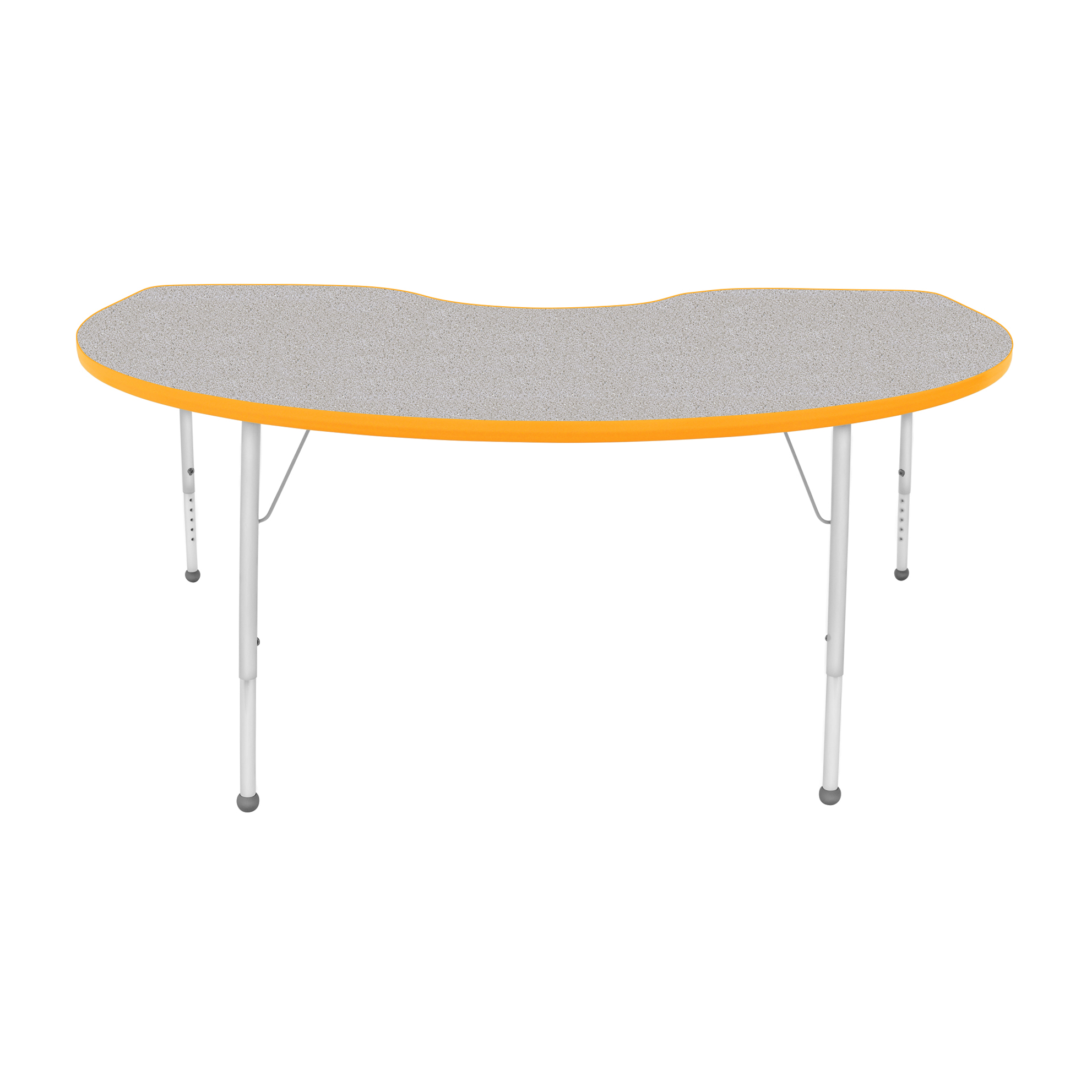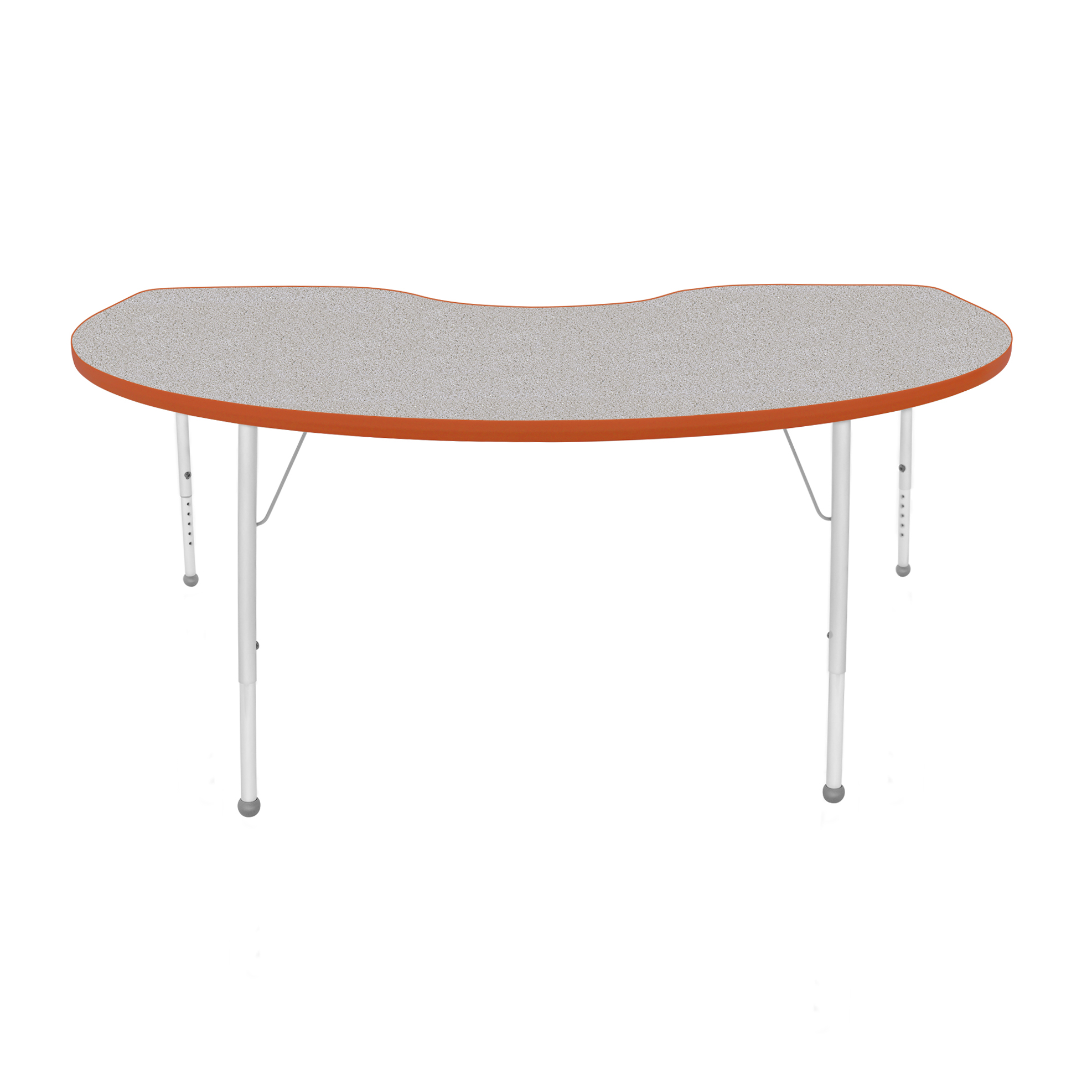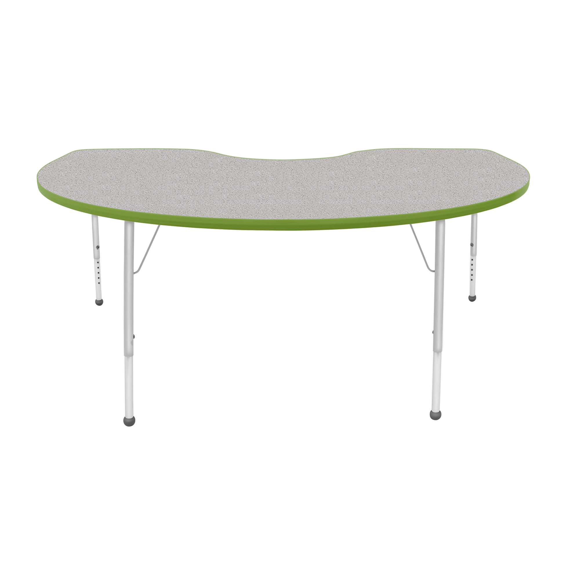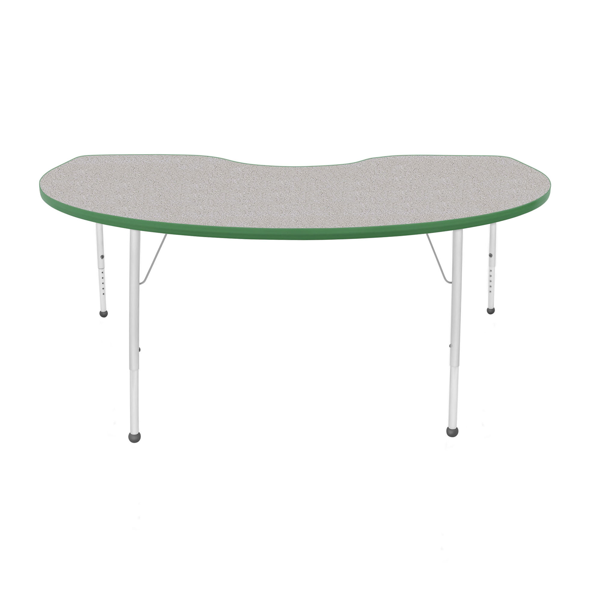 An attractively designed ECO-certified activity table focused on safety and durability. For a stain-resistant and easy to clean surface that is hard enough to resist chips and dings, the table top and bottom both feature a durable thermally fused laminate. The top is also finished with a wrap-around T-mold edge. Height-adjustable legs include a powder-coat finish on the upper legs and inserts. Platinum silver ball glides come standard as feet.