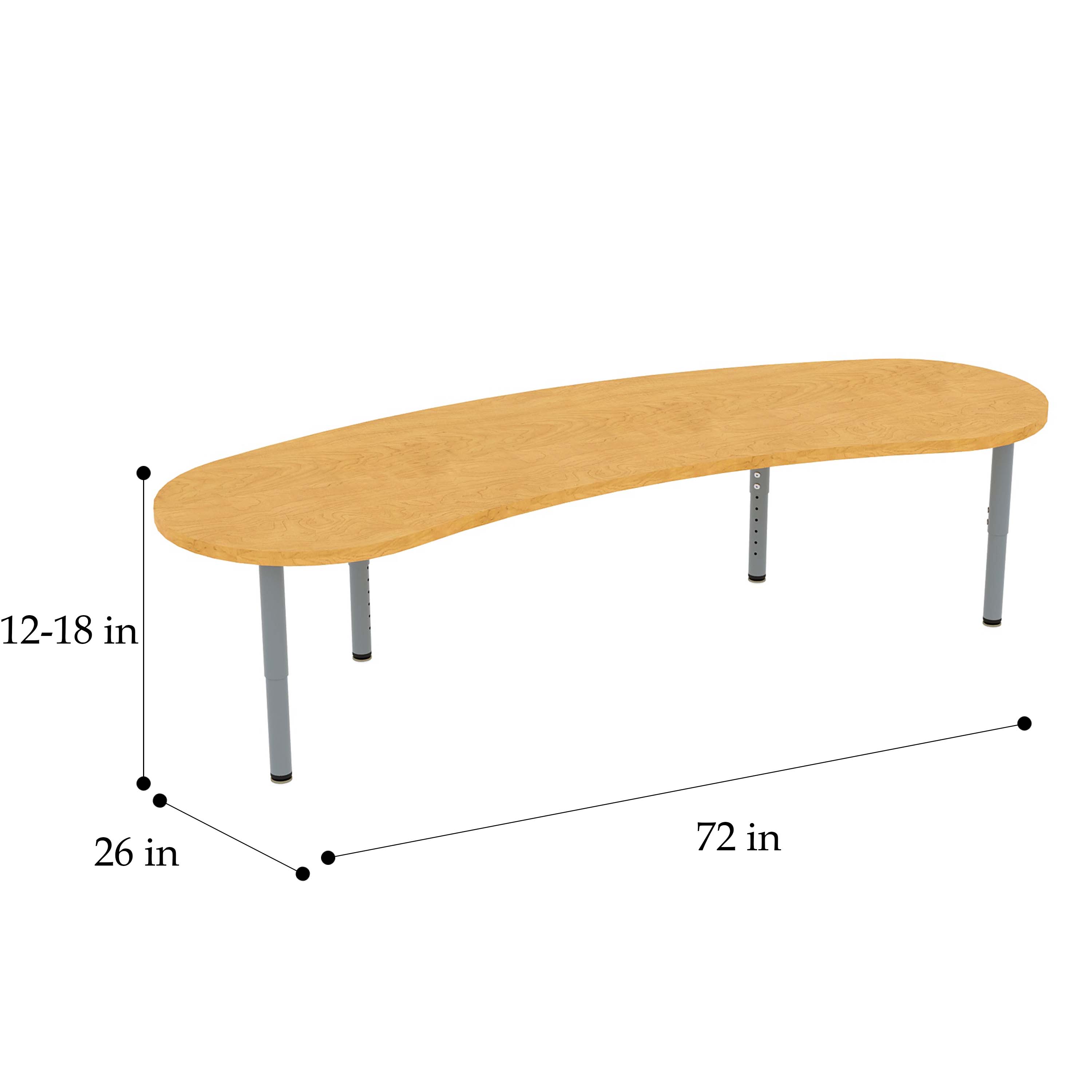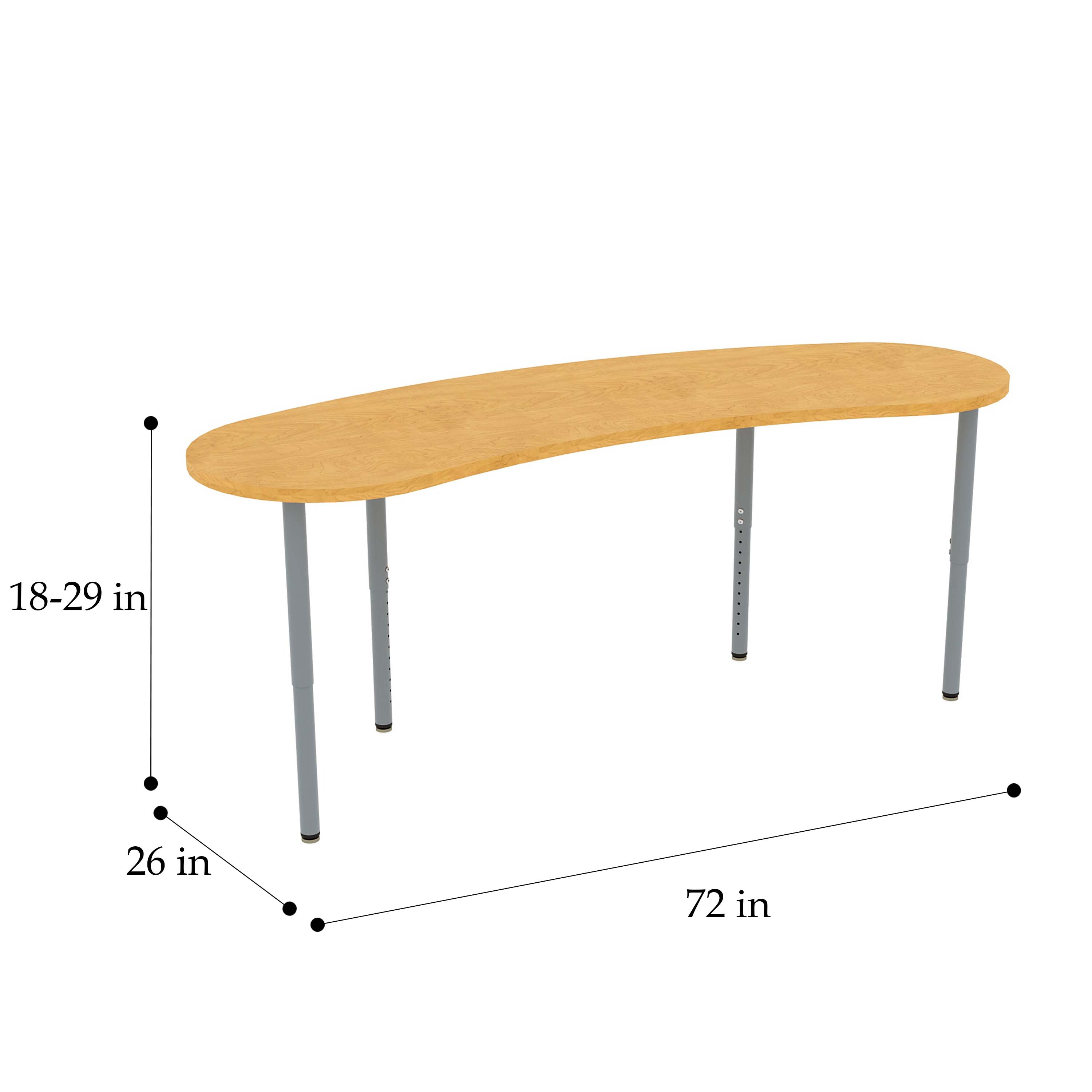 Create an exciting and engaging classroom environment with a stylish kidney table for your students. Perfect for early learning environments, this kidney table is built to support group instruction, for student-teacher engagement, and for collaborative activities in a comfortable and safe design. With a smooth curved surface and spacious design, six to seven preschool age children can fit comfortably. The unique shape provides better visibility and student interaction than traditional rectangle tables. The inner curve allows the teacher to easily interact and supervise with multiple students. Perfect for small-group art projects, snack time, lessons and collaborative learning. The elegant design features adjustable-height legs with built-in levelers, growing with your students, delivering long-lasting functionality in busy educational environments.