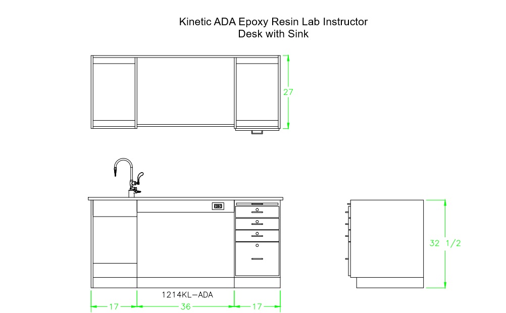 Kinetic ADA Epoxy Resin Lab Instructor Desk with Sink - Diversified