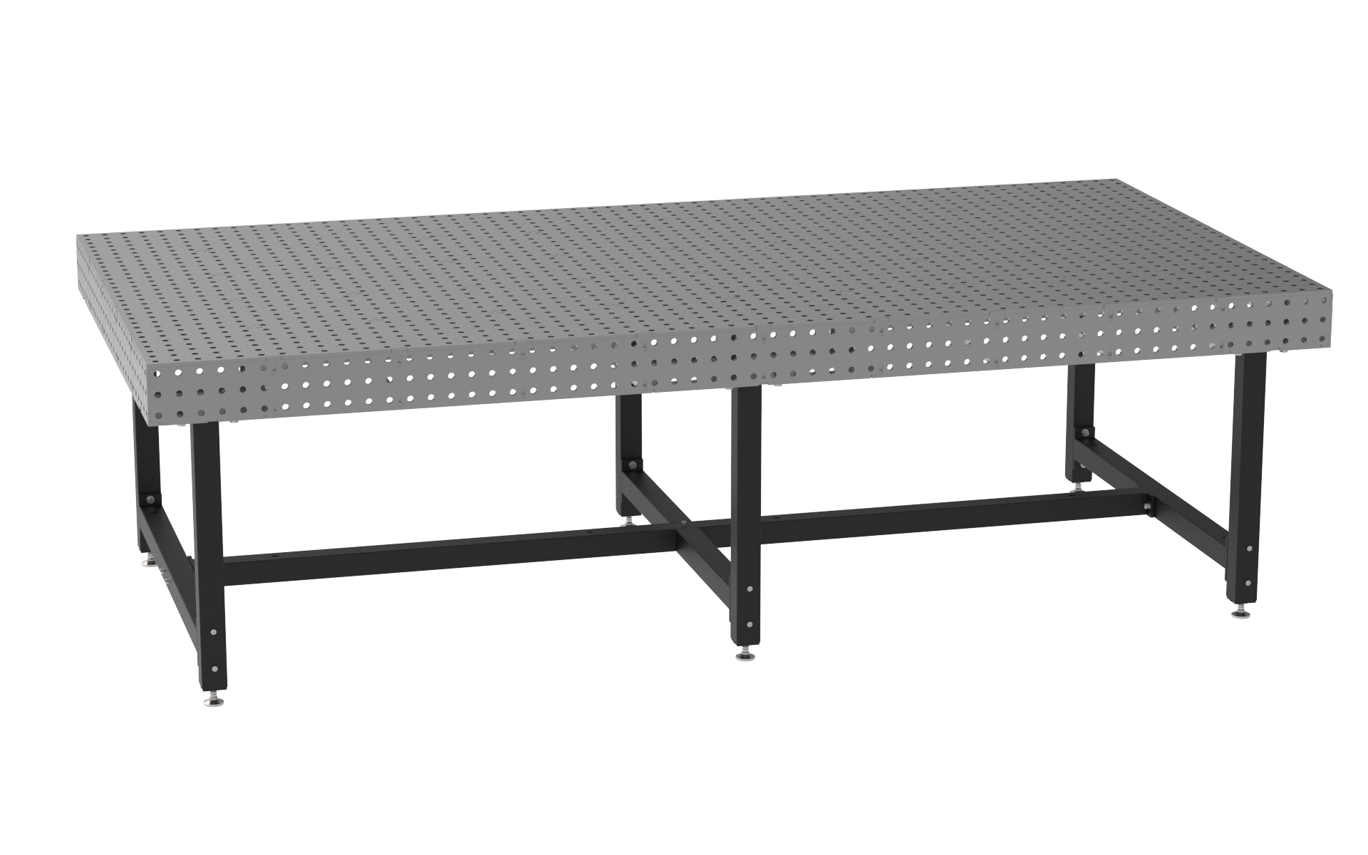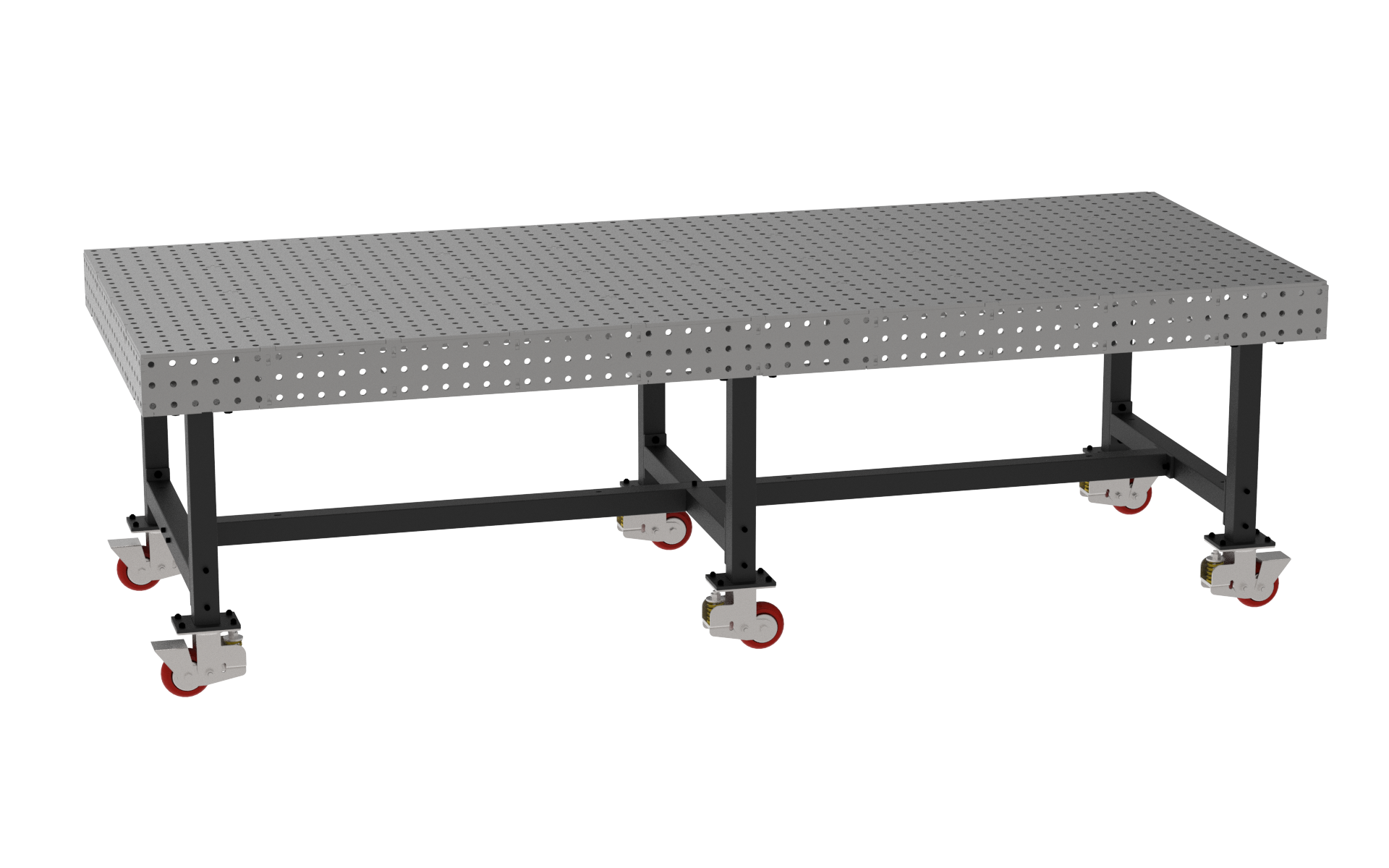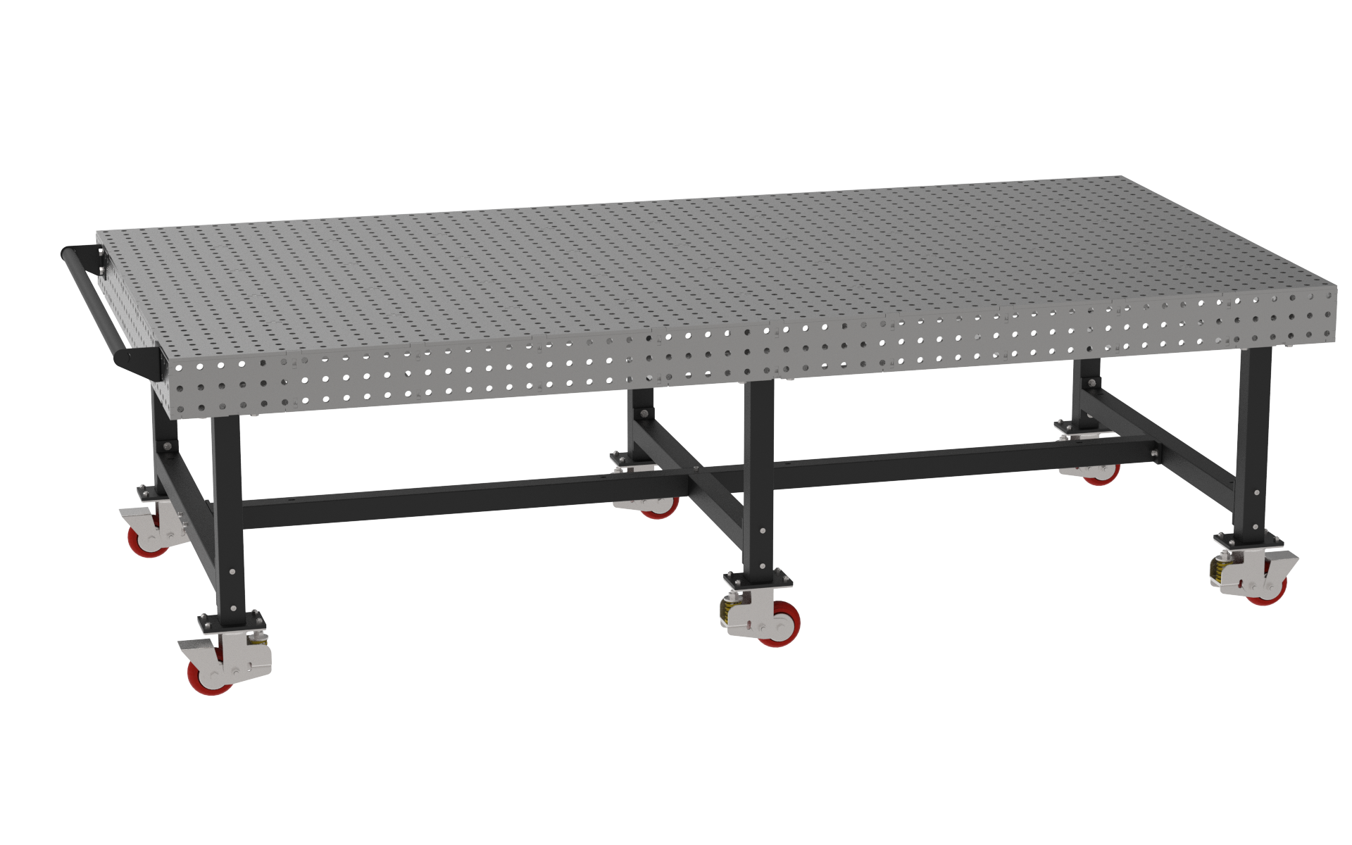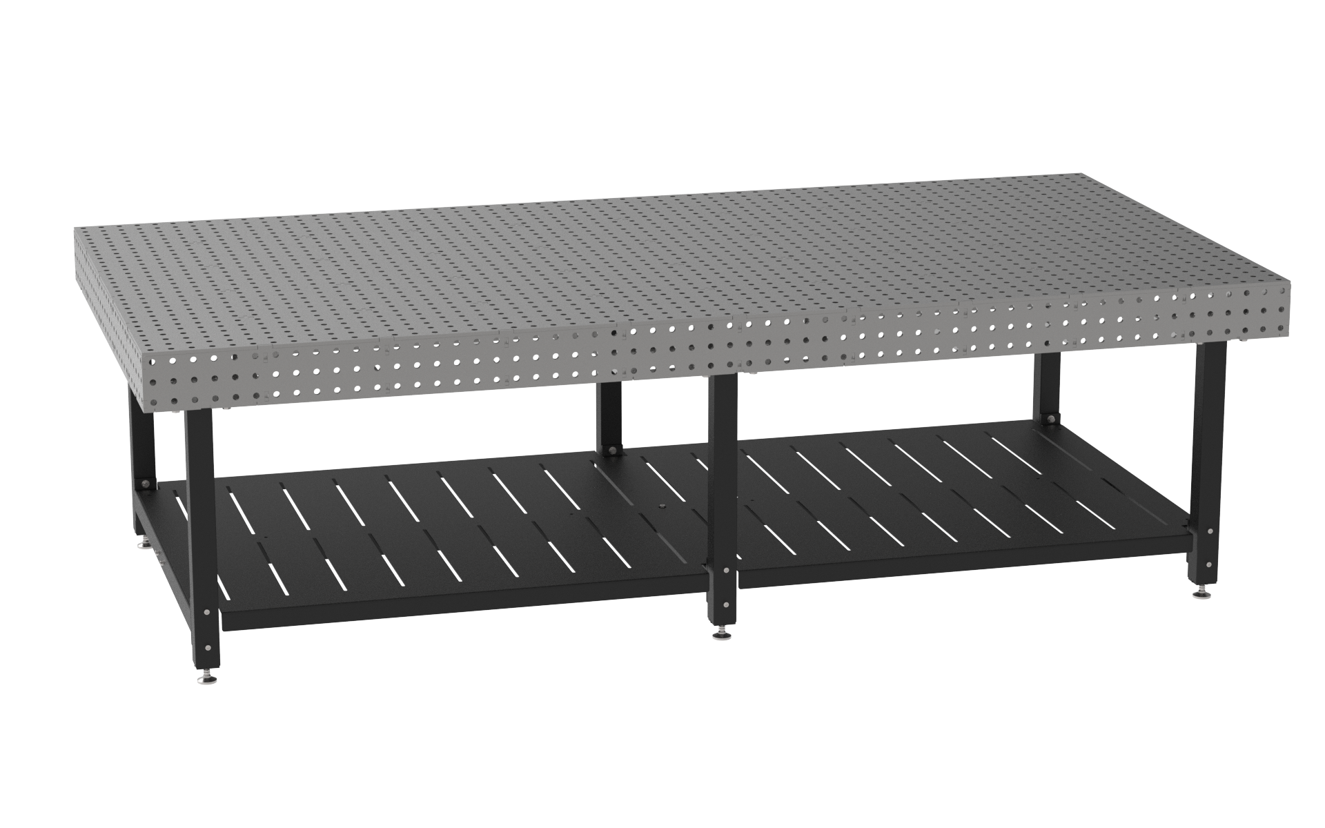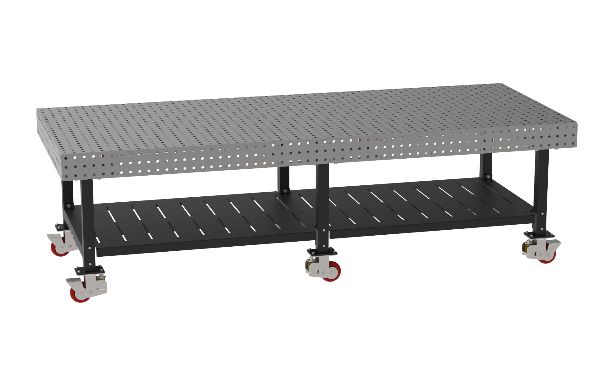 Upgrade your career technical education classroom with a table designed specifically for enabling real-world practice, fostering creativity, and inspiring the next generation of skilled professionals. This welding and prep table is manufactured in the USA using American-processed steel, and is supported with tubular cross-bracing for stability which increases the table's resistance to side loading by up to 70%. The grid of welded support on the underside adds to its strength and durability, while the laser cut holes allow for accessory mounting. Available with or without shelf, casters, or push handle, and in multiple sizes to best meet your workspace needs. **Casters must be added at the time of order, cannot be added later.