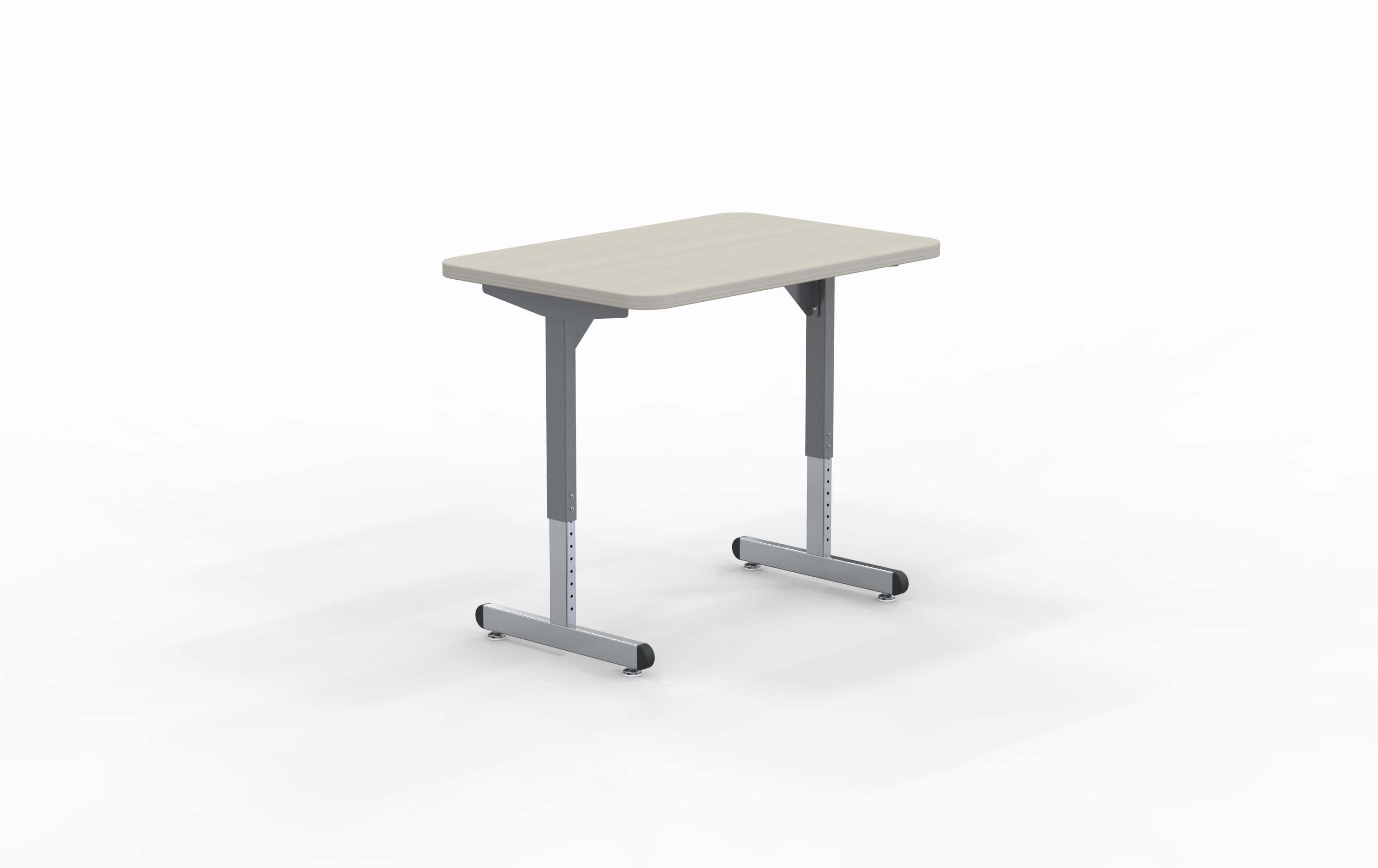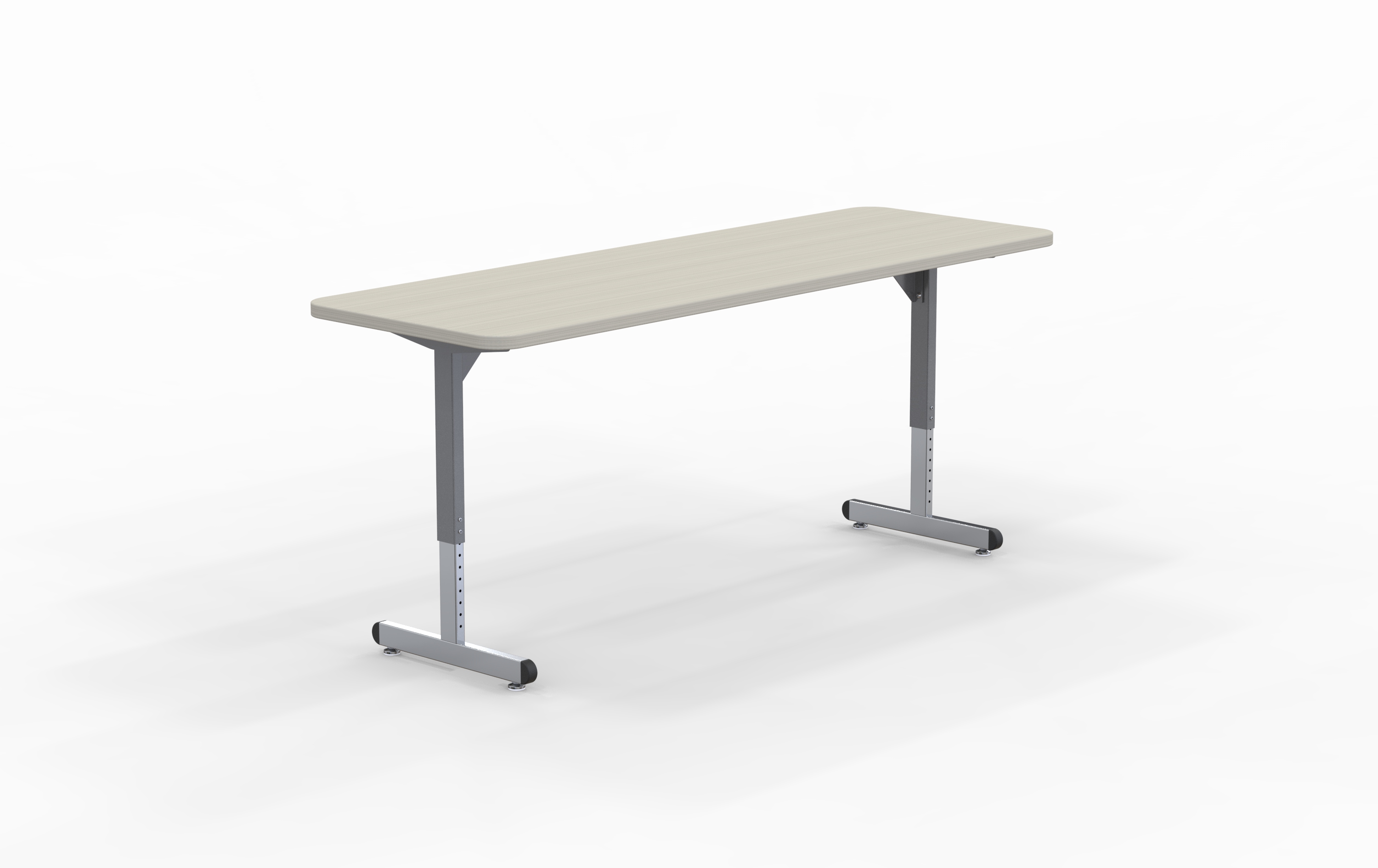 NEW!!! T-Leg desks and tables constructed with a writable dry erase melamine work top and PVC edge banding. The dry erase surface provides student function for taking notes, drawing, or brainstorming. The top is mounted to steel upper-legs that have a durable powder-coat finish. Chrome-plated leg inserts provide height-adjustability. Adjustable nylon glides protect floors and allow for easy leveling.