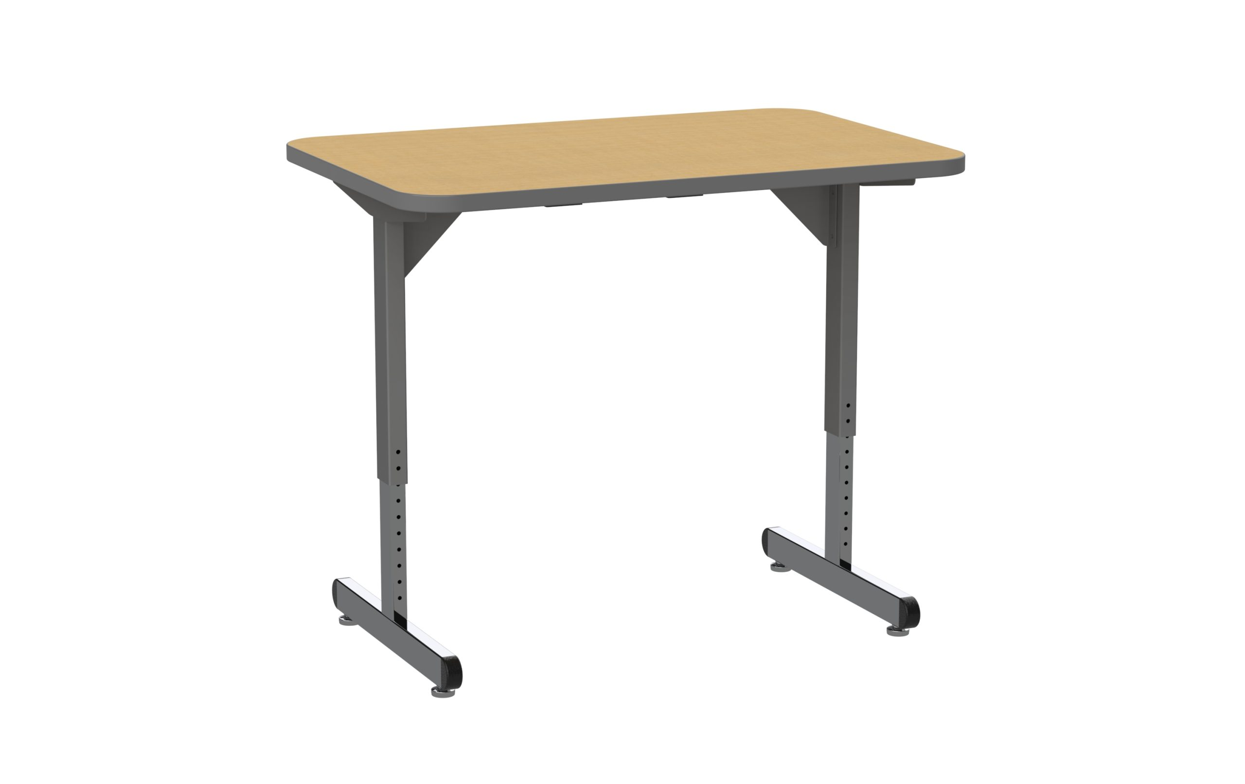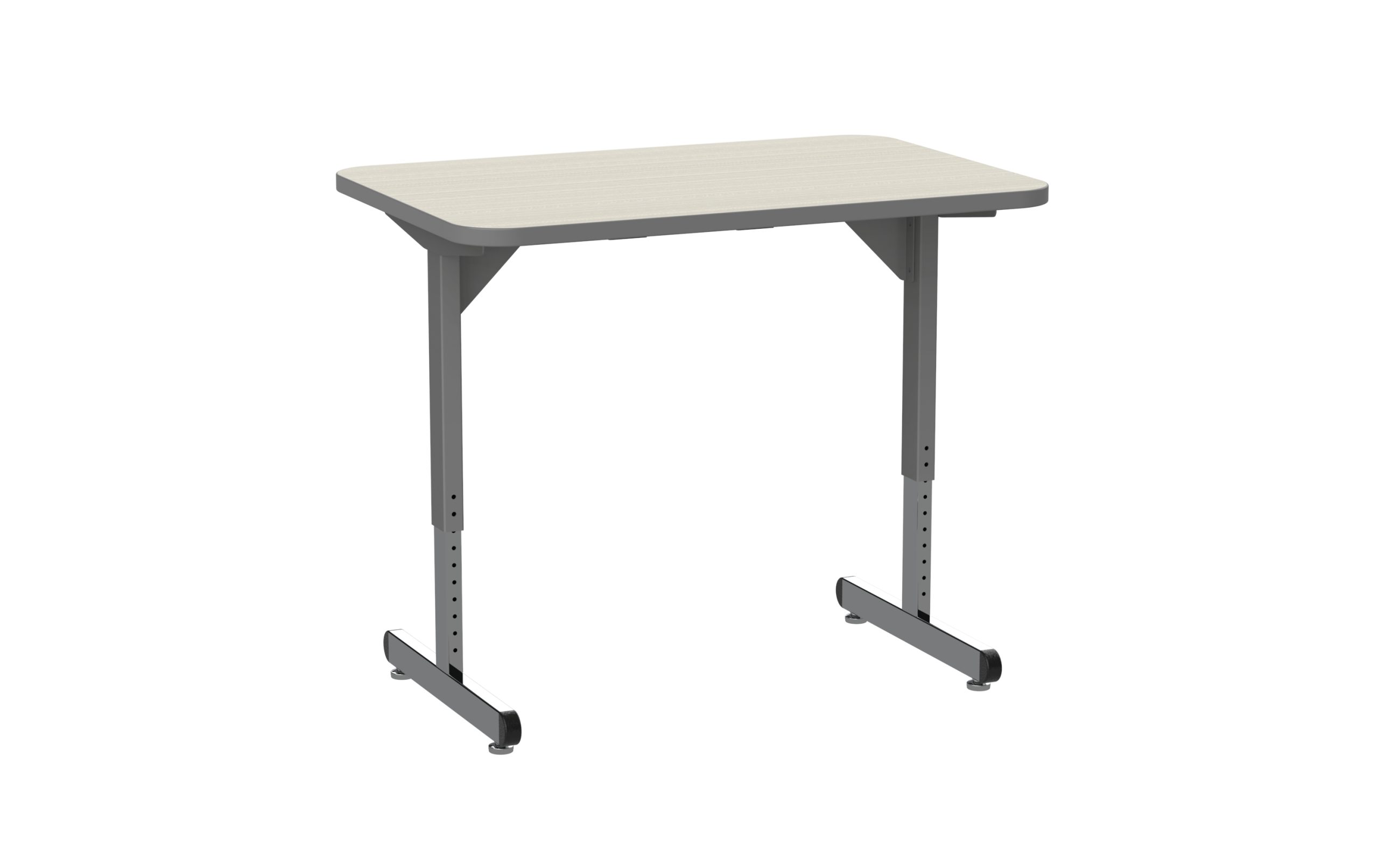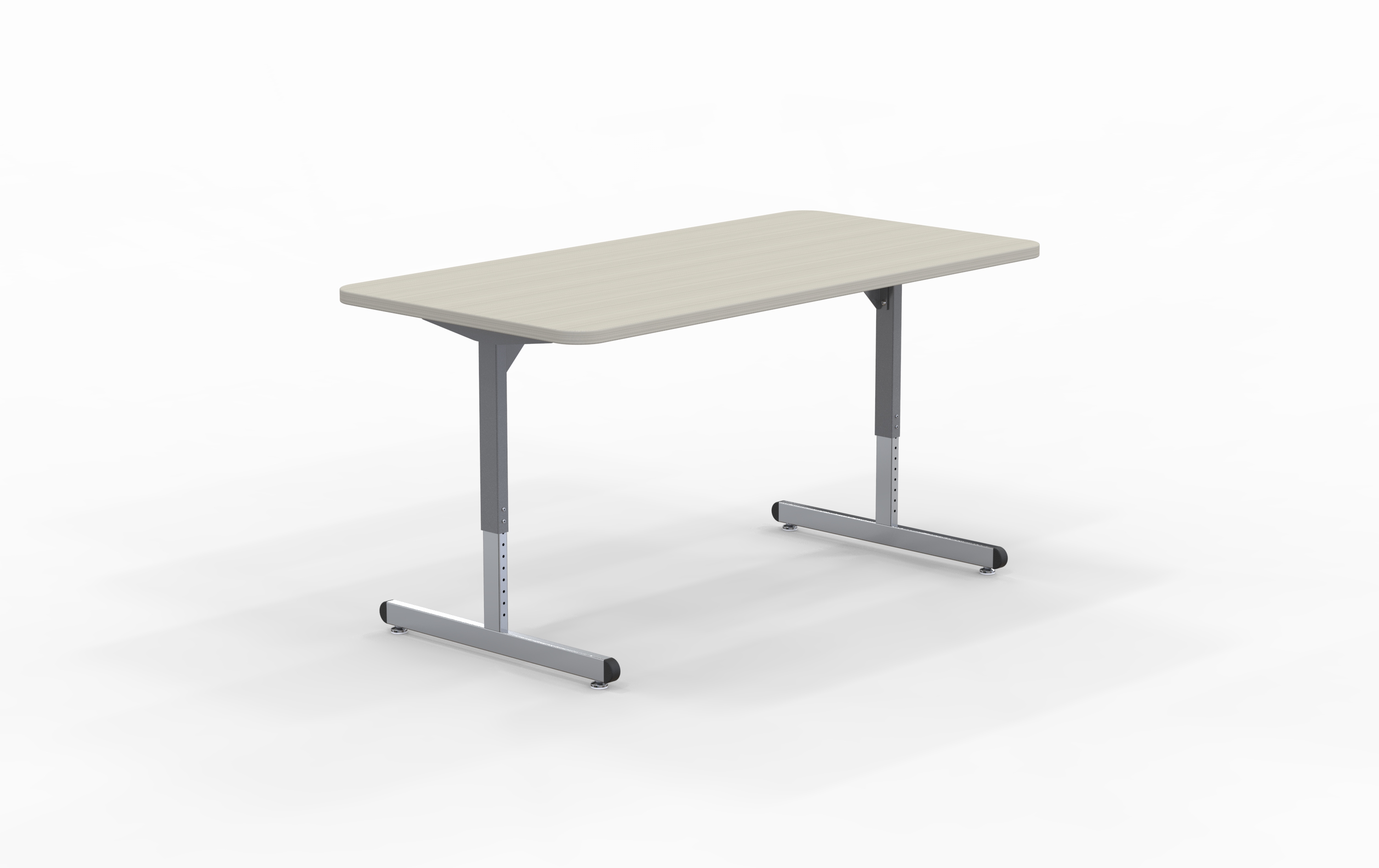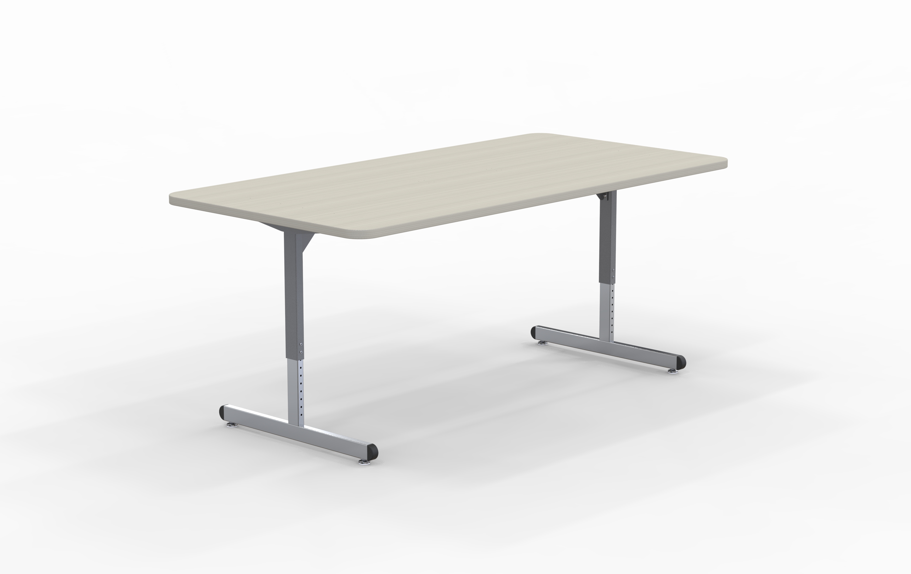 NEW!!! T-Leg desks and tables are designed for maximum versatility. Each model is constructed with sleek thermally fused melamine work surface on both sides and features durable PVC edge banding. The top is mounted to steel upper-legs that have a durable powder-coat finish. Chrome-plated leg inserts provide height-adjustability. Adjustable nylon glides protect floors and allow for easy leveling.