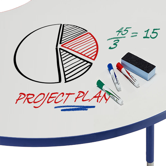 Convert any room into a collaborative learning space! The Modern Classic Round Shaped Dry Erase Table combines classic and modern style with functional durability for a versatile classroom table. The dry erase tabletop is ideal for taking class notes, brainstorming, and doodling. The classic round shape invites spontaneous ideas, open conversations, and encourages a sense of community. Equipped with standard nylon swivel glides these tables can be relocated with ease. **Please Note: Casters are unavailable for the Modern Classic Leg Series**