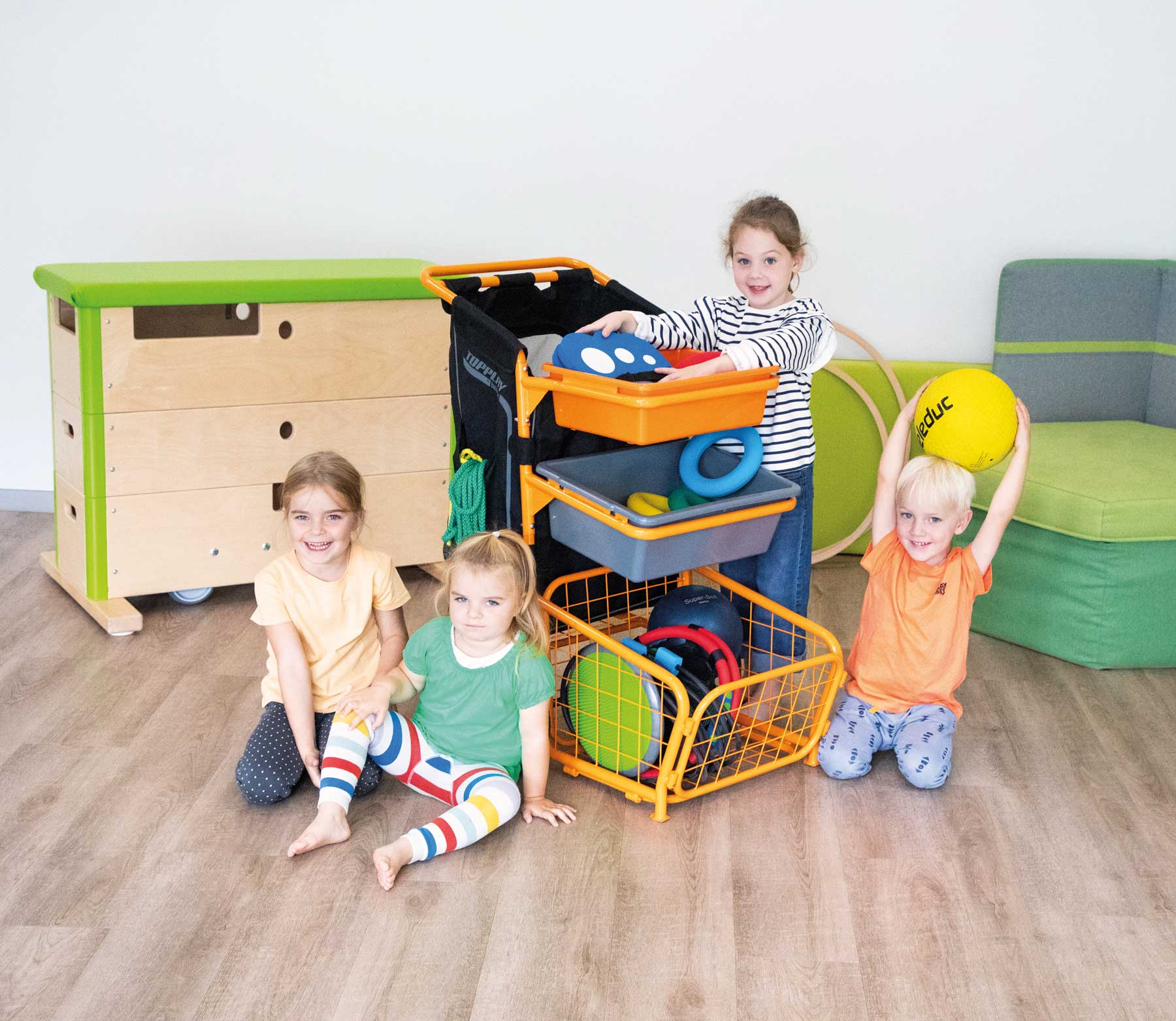 Transport everything you need! The Multi-Flex Trolley is the best companion for indoors and outdoors, making it easy to store, transport, clean and more. Perfect for transporting items within a room or room-to-room, or when on the go. Great for sports and exercise items, everything from balls to jump ropes. Outdoors, this multi-purpose trolley is the ideal companion for hiking and other excursions. For class, the trolley can be used for collecting nature samples. Personal items like children's backpacks and coats can be taken along for later distribution. Accessories Not Included. Play Experience. Learn