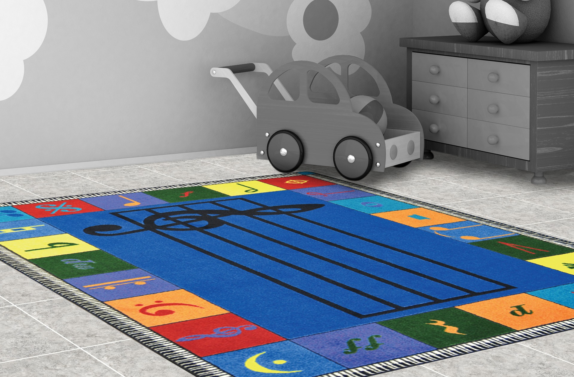 This rug is designed to help students develop a lifelong appreciation for music. Both preschool and elementary grade students can practice recognition of music symbols, note matching, rhythms, and basic math skills. The preschool design replaces music notes with pictures of instruments for better comprehension. Since 1973, Joy Carpets has been the leader in the design and manufacturing of education rugs for inspired learning centers where creativity and function are of primary importance. Crafted with pride in the USA and designed to help children explore, discover, and learn about their world.
