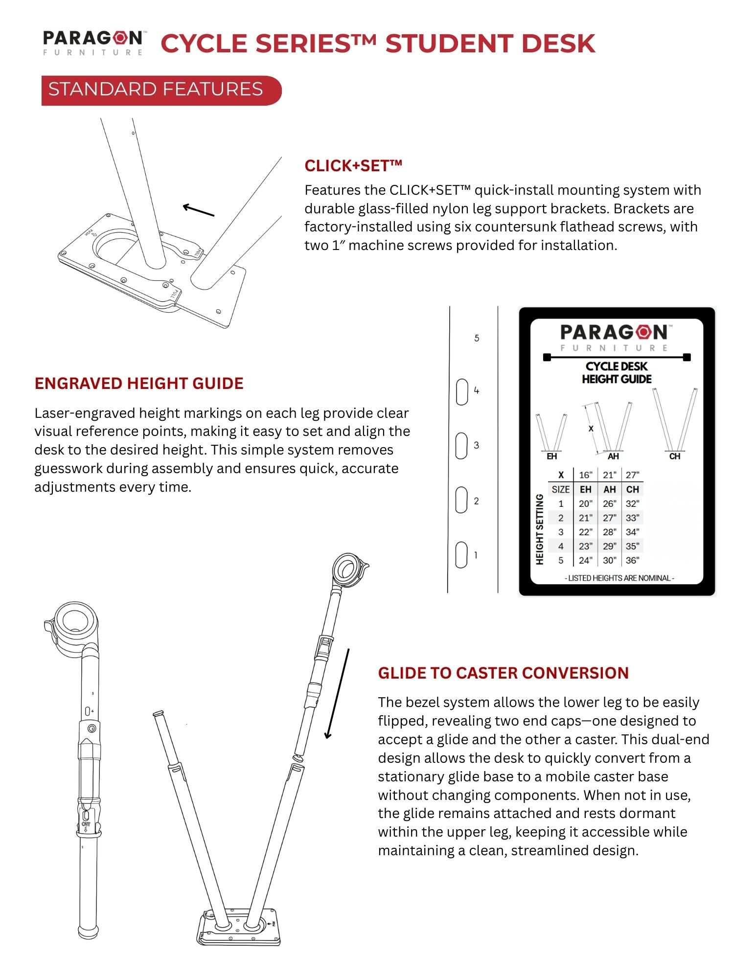 Get the Paragon CYC-DEH1832R / CYC-DAH2132R / CYC-DAH2432R / CYC-DCH2432R Cycle Series High Pressure Laminate Single Student Desk for your classroom today. Purchase the Paragon CYC-DEH1832R / CYC-DAH2132R / CYC-DAH2432R / CYC-DCH2432R Cycle Series High Pressure Laminate Single Student Desk for your classroom from Today’s Classroom and take advantage of our competitive pricing, low shipping rates, and exceptional customer service. Once you buy from us, we think you’ll keep coming back because we are truly committed to helping you get the best price on award-winning classroom solutions from Paragon. We do our best to make it easy for you to shop for all the Paragon you need in one place and we accept purchase orders for payment. Order your Paragon CYC-DEH1832R / CYC-DAH2132R / CYC-DAH2432R / CYC-DCH2432R Cycle Series High Pressure Laminate Single Student Desk from us today and keep coming back for all your educational classroom products! Save on the Paragon CYC-DEH1832R / CYC-DAH2132R / CYC-DAH2432R / CYC-DCH2432R Cycle Series High Pressure Laminate Single Student Desk for your classroom. Call 877-909-9910 for the latest deals on Paragon! Authorized Paragon Dealer.