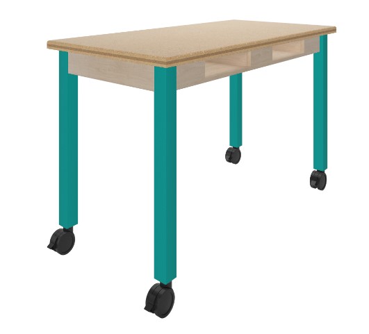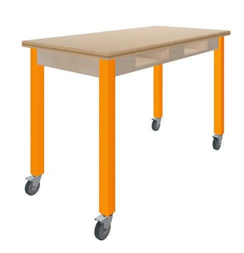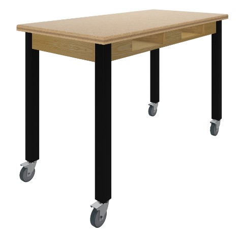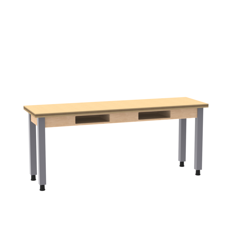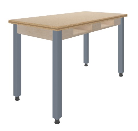 A heavy-duty table perfect for STEM learning environments and CTE classrooms. Boasting a durable non-conductive ShopTop with an integrated hardwood apron that includes two book compartments for convenient student storage. Steel corner braces prevent the table from wobbling. Powder-coated tubular steel legs include adjustable, non-skid glides.