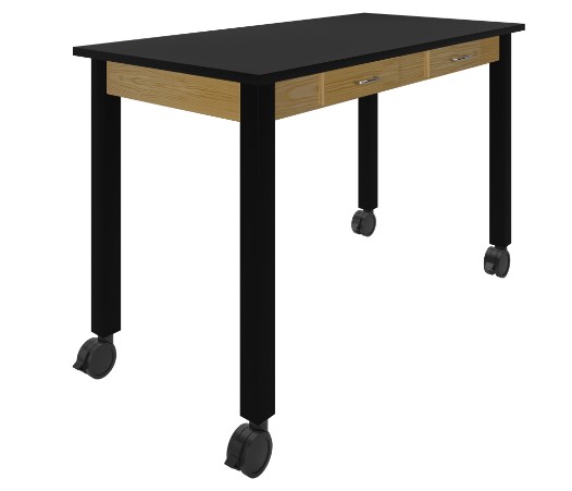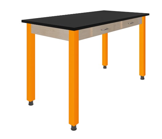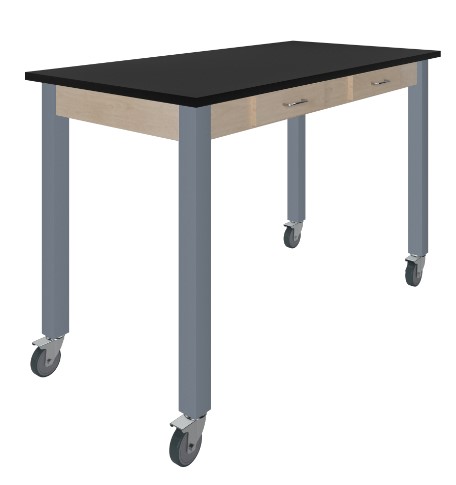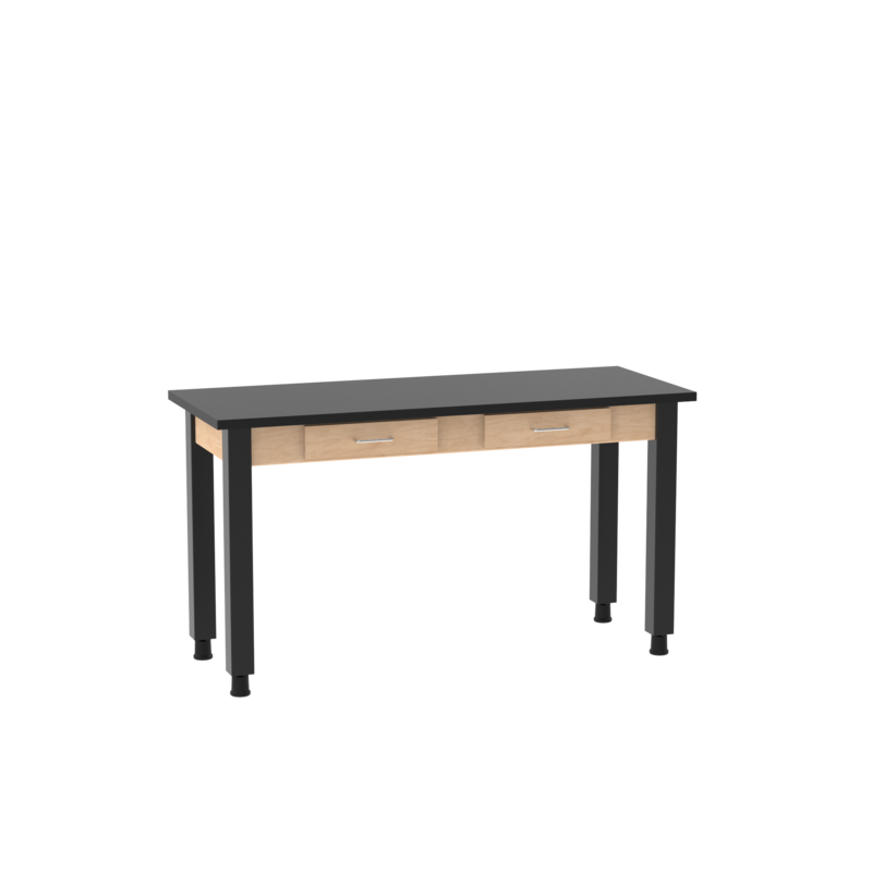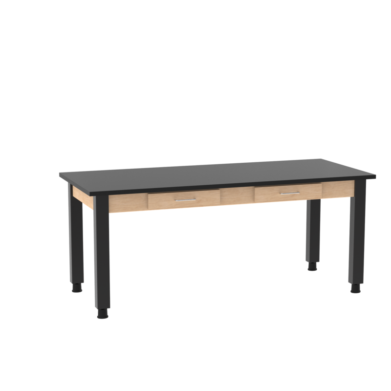 Designed with high-traffic learning environments in mind, this epoxy top table is reinforced with a steel frame. Boasting impressive chemical, heat, flame, and impact resistance, the work top is fit for any lab setting. An integrated apron includes two pull-out drawers for easy-to-access storage. Steel corner braces secure the top to the powder-coated tubular steel legs. Included adjustable glides ensure a level work area on uneven surfaces.