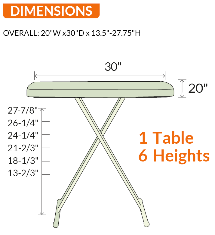 The perfect solution for a compact multi-purpose single person folding table! Featuring a wide blow molded plastic top designed to have ample room for holding a laptop and mousepad. Designed for working, dining, and recreation with a space-saving fold-flat design. Adjustable height legs are connected the heavy-duty steel frame, both powder coated.