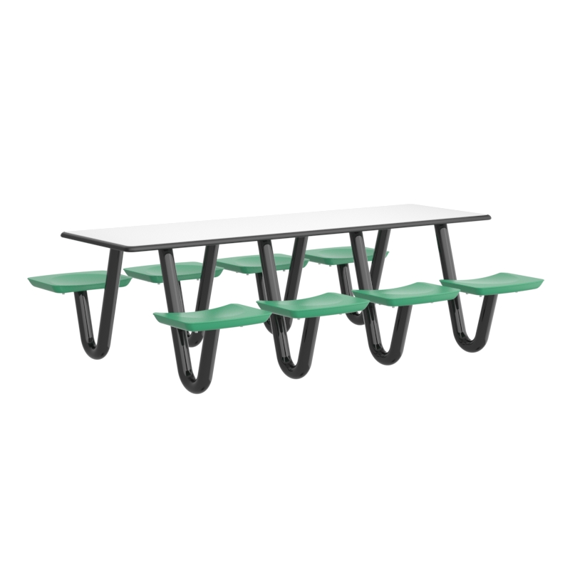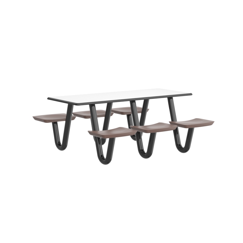 This heavy-duty table is perfect for continuous use in any dining or social environment. The rounded edges amplify both comfort and safety for each user. For ADA compliance, the table can be manufactured with one less leg to create the necessary space.