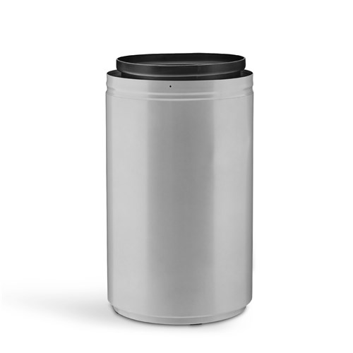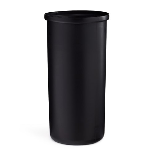 This black base receptacle can is a great way to keep the workplace clean and organized. Constructed of heavy Duty Plastic with a powder coat finish. Lid easily pulls off to hide bag. Holds 14 gallon capacity. Rigid plastic liner included.