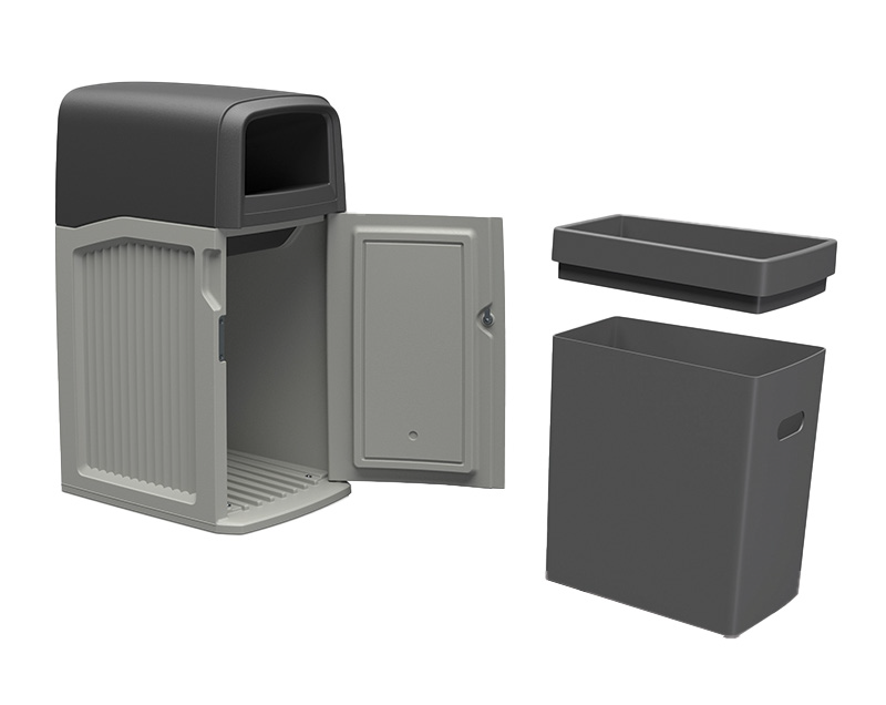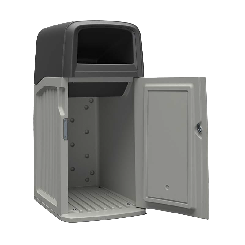 The ultimate solution for maintaining cleanliness and safety. This tamper-resistant waste bin helps prevents individuals from reaching the discarded contents or can liners. The front door locks with a master key for added security.