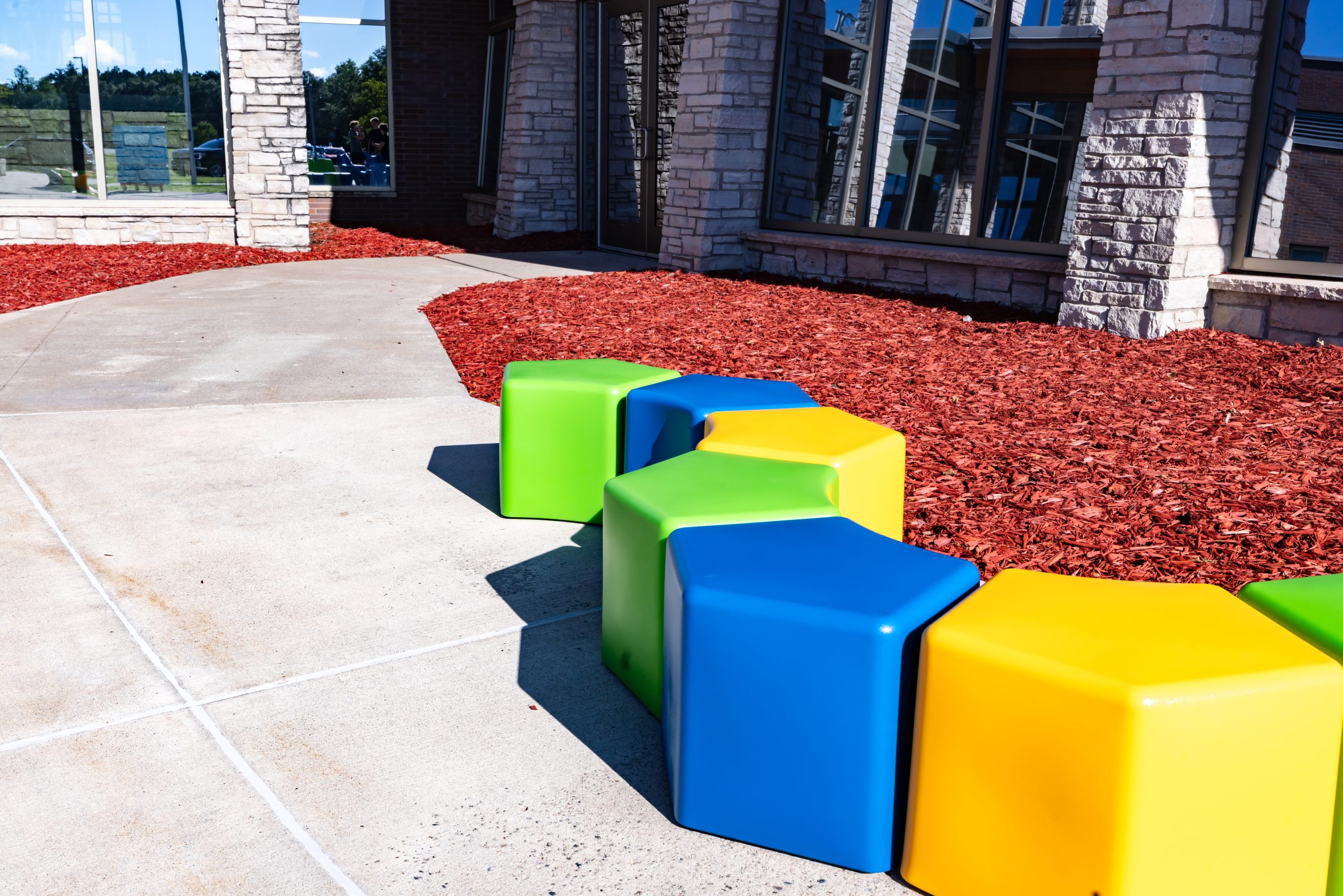 The Curved Pentagon loves company! Use this fun shape as a seat, table, or ottoman! Designed to work in groups of three and nine, this versatile shape is perfect for evolving spaces such as classrooms, lounge areas, and outdoor areas! The Curved Pentagon can also be arranged in a serpentine configuration, to best suit your environment. The durable polyethylene shell - like a high-end cooler, is fully weatherproof making it great for outdoor settings. The Santoprene rubber legs also provide year-round outdoor use. Perfect for high-traffic spaces such as schools, libraries, healthcare facilities, retail and more!