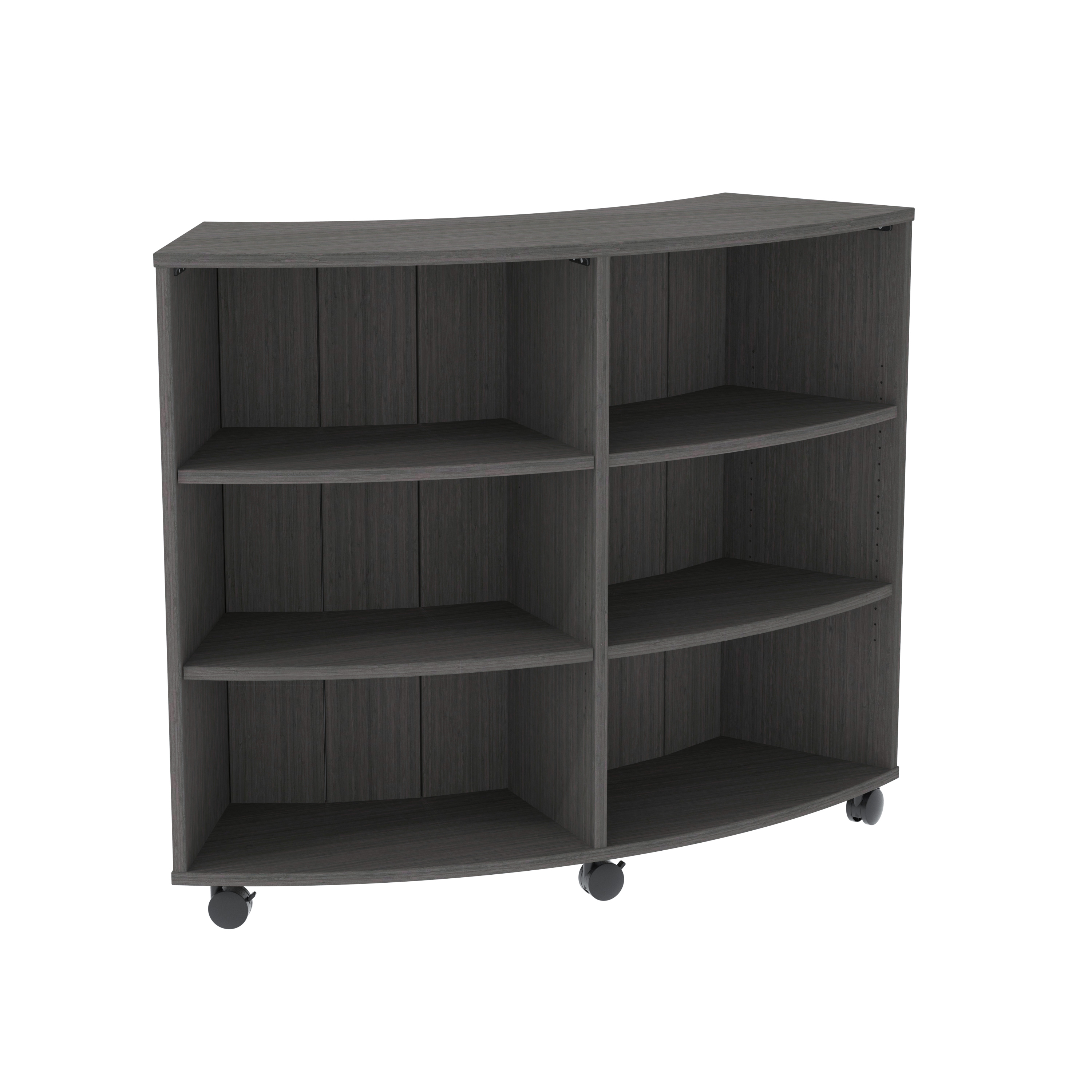 Make your contemporary reading space unique with curved book storage! Adjustable-height shelves allow for ample book storage while the heavy-duty casters provide convenient mobility. Constructed with thermally fused melamine and thick adjustable shelves, this bookcase is ideal for any light duty classroom or library environment!