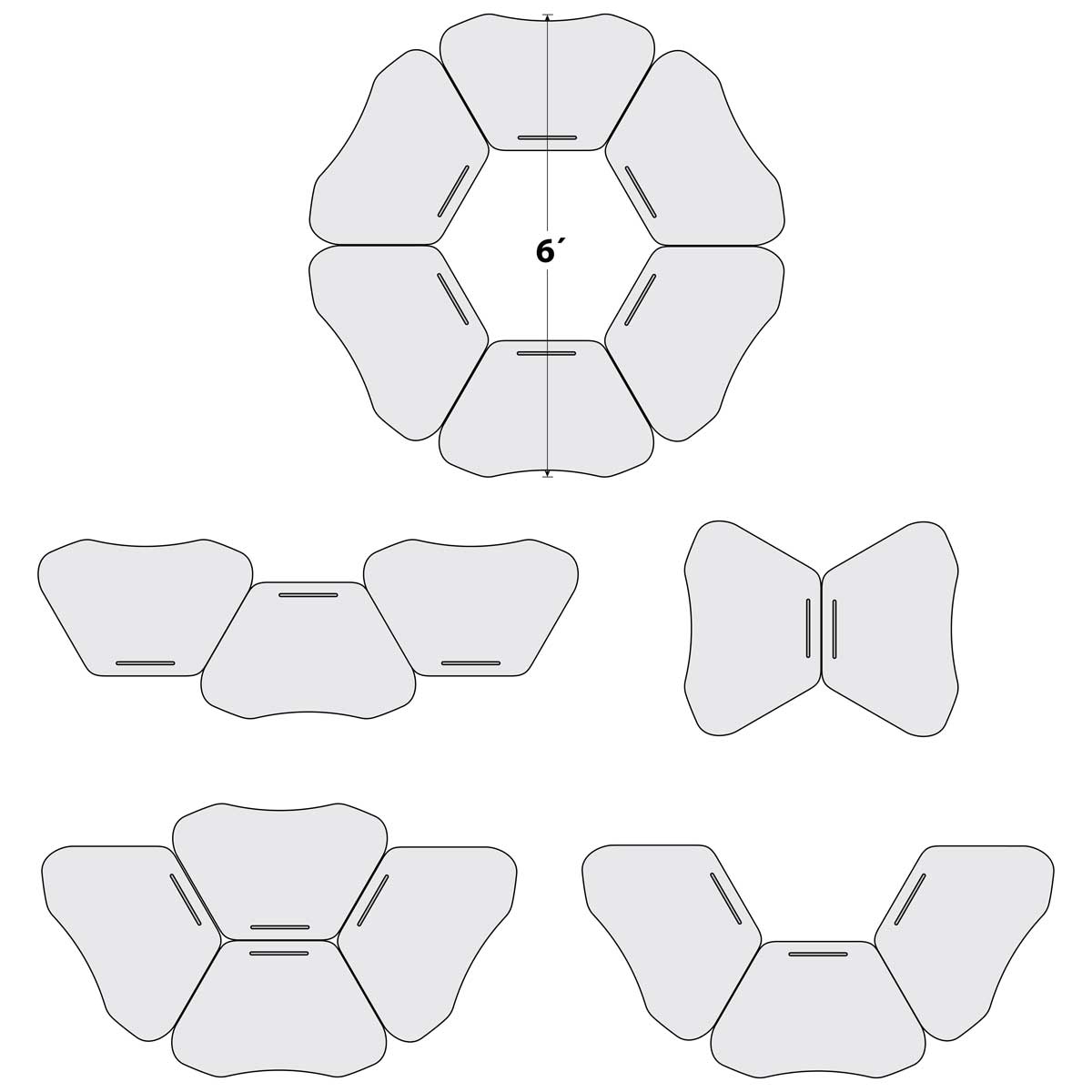 Six Student Hexagon Adjustable Height Desk and Omnia Chair Bundle - Columbia