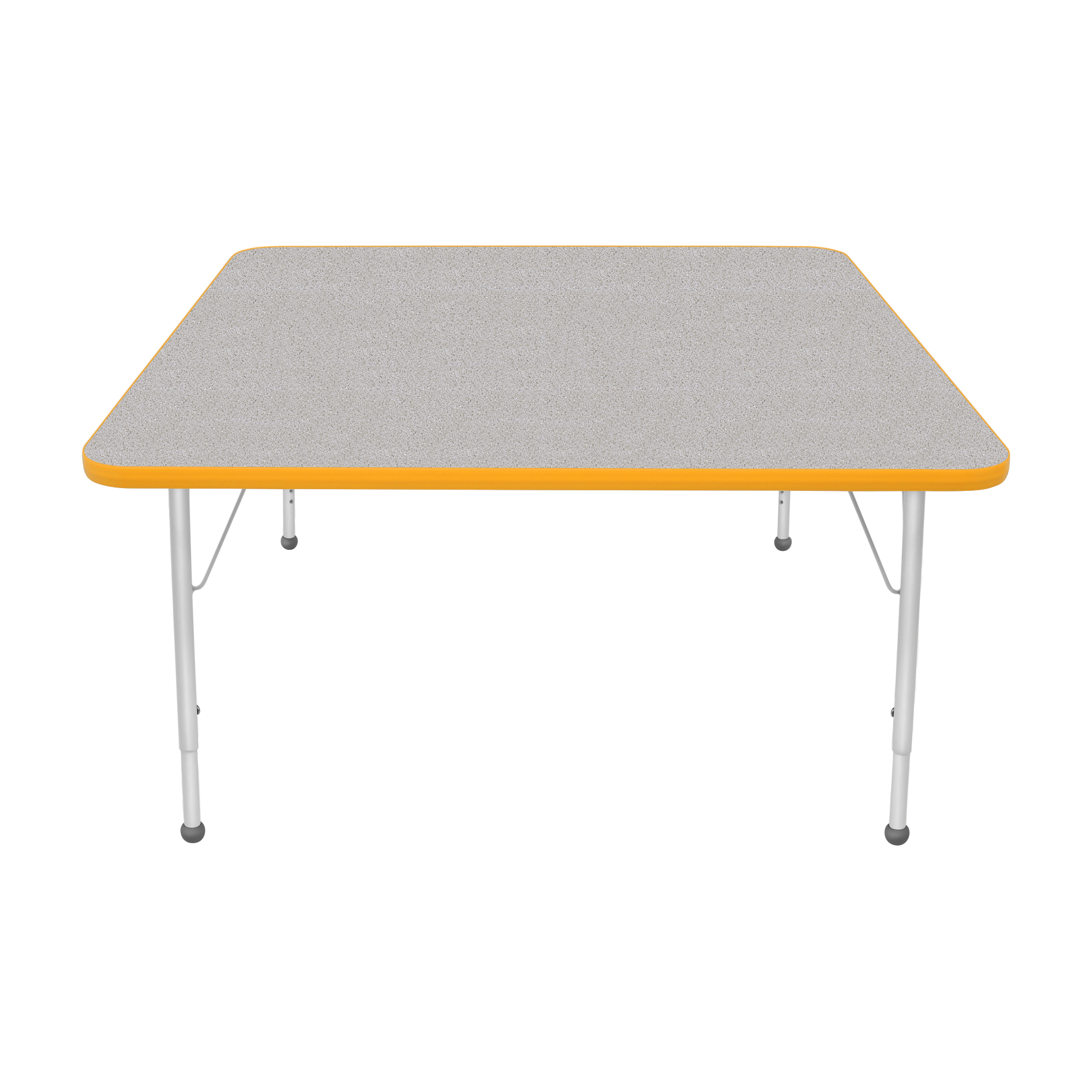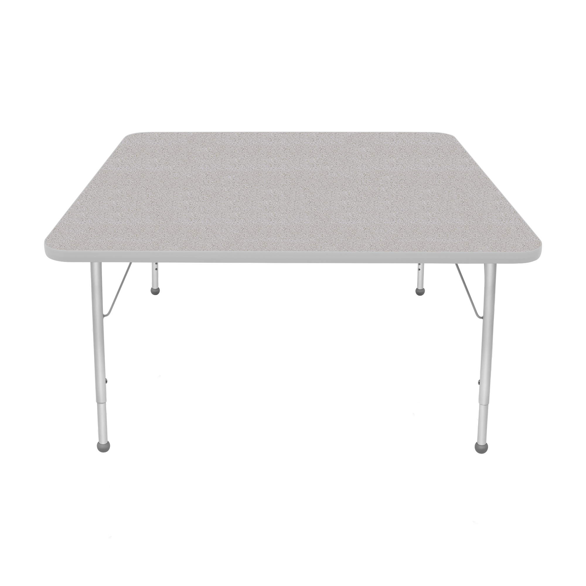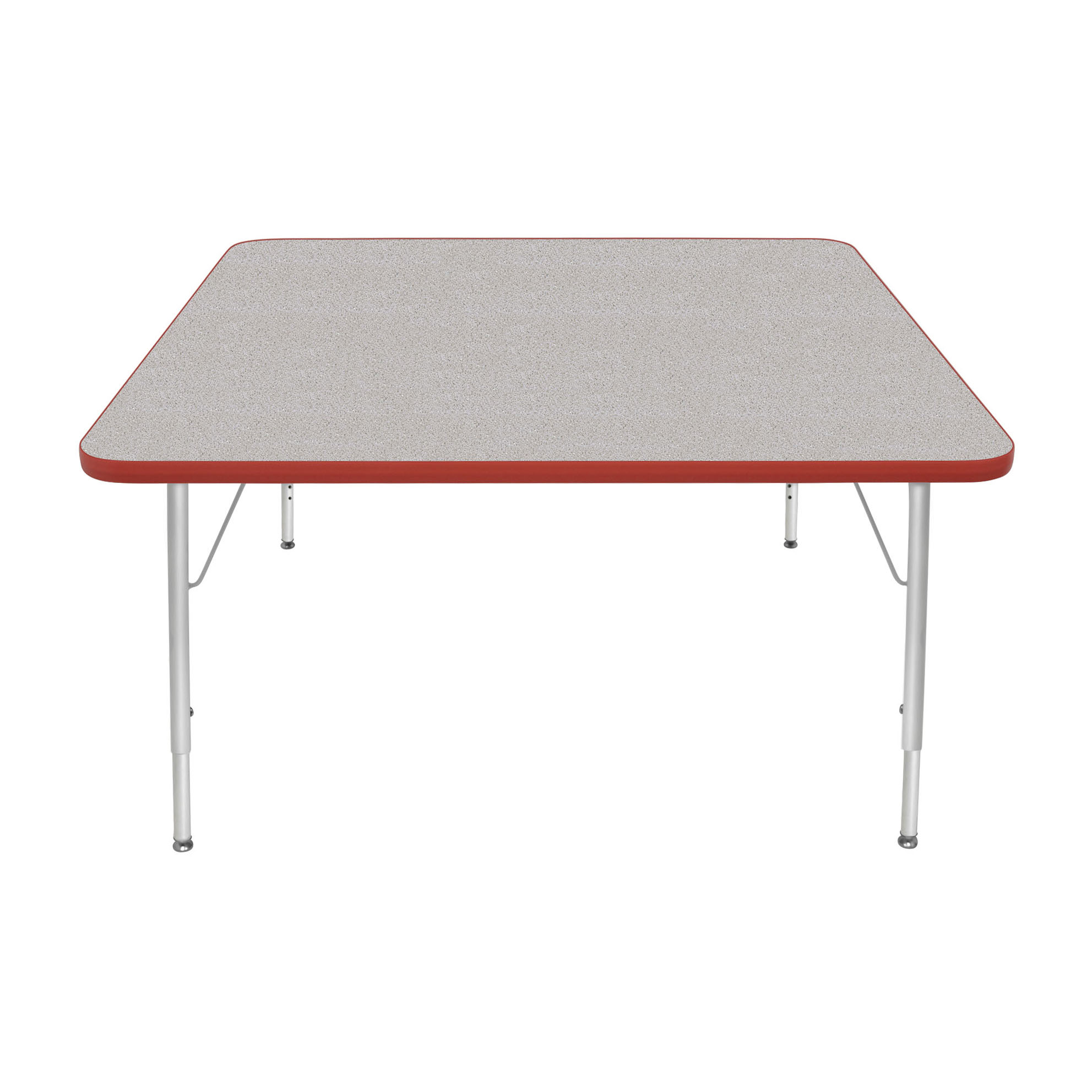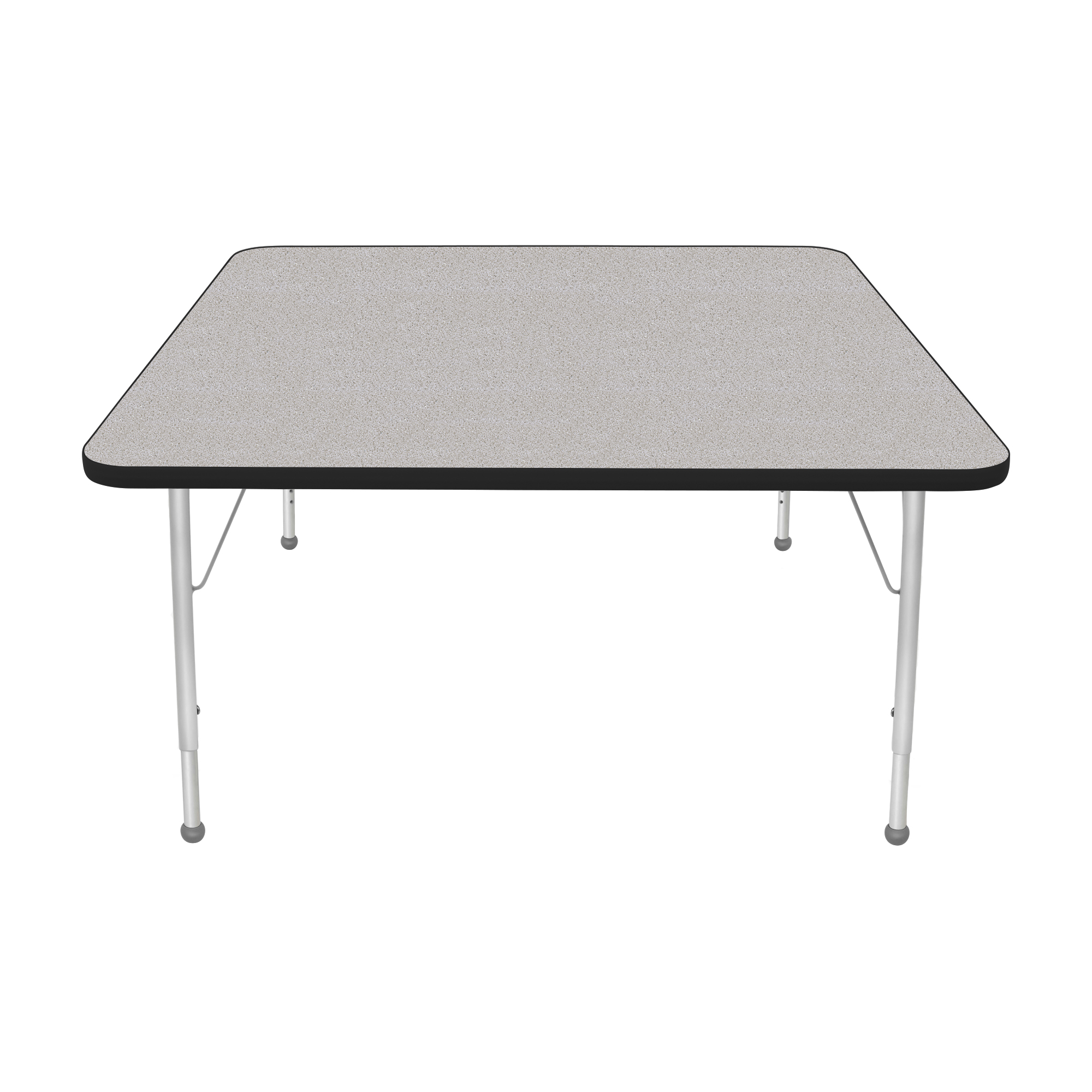 An attractively designed ECO-certified activity table focused on safety and durability. For a stain-resistant and easy to clean surface that is hard enough to resist chips and dings, the table top and bottom both feature a durable thermally fused laminate. The top is also finished with a wrap-around T-mold edge. Height-adjustable legs include a powder-coat finish on the upper legs and inserts. Platinum silver ball glides come standard as feet.