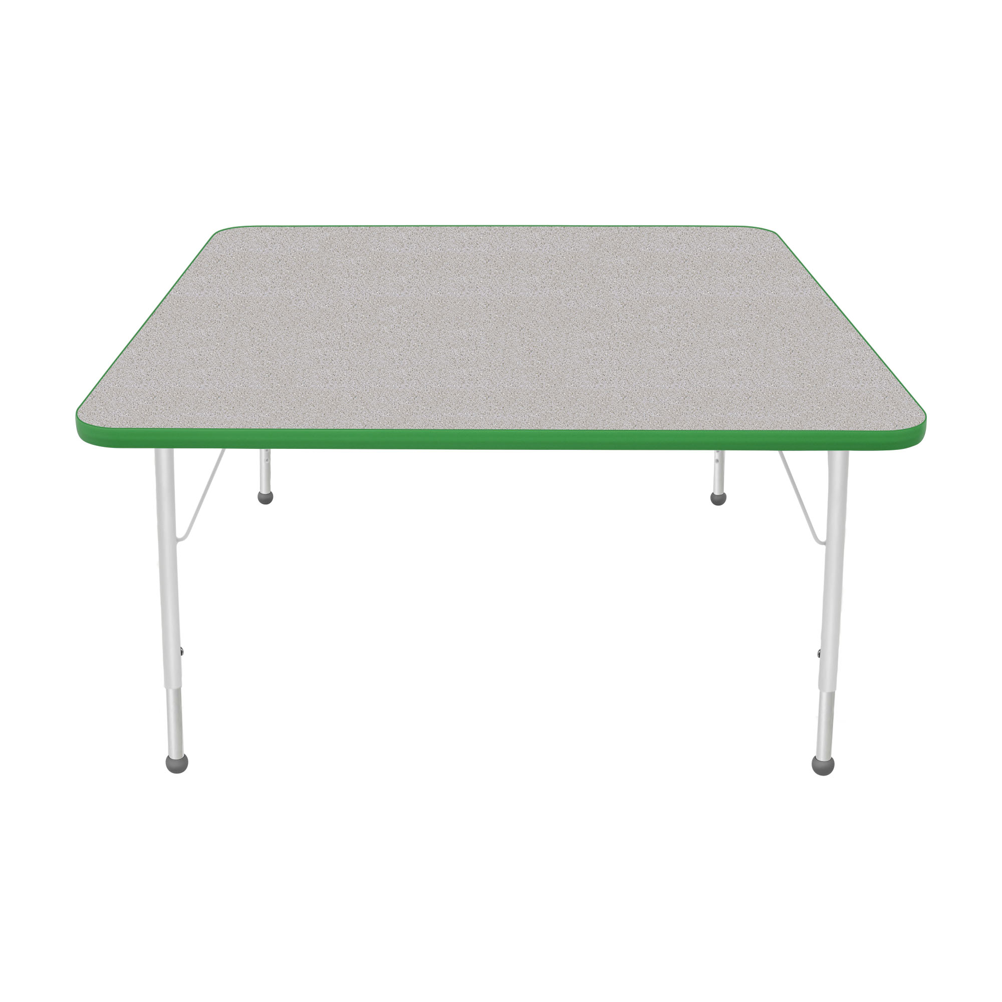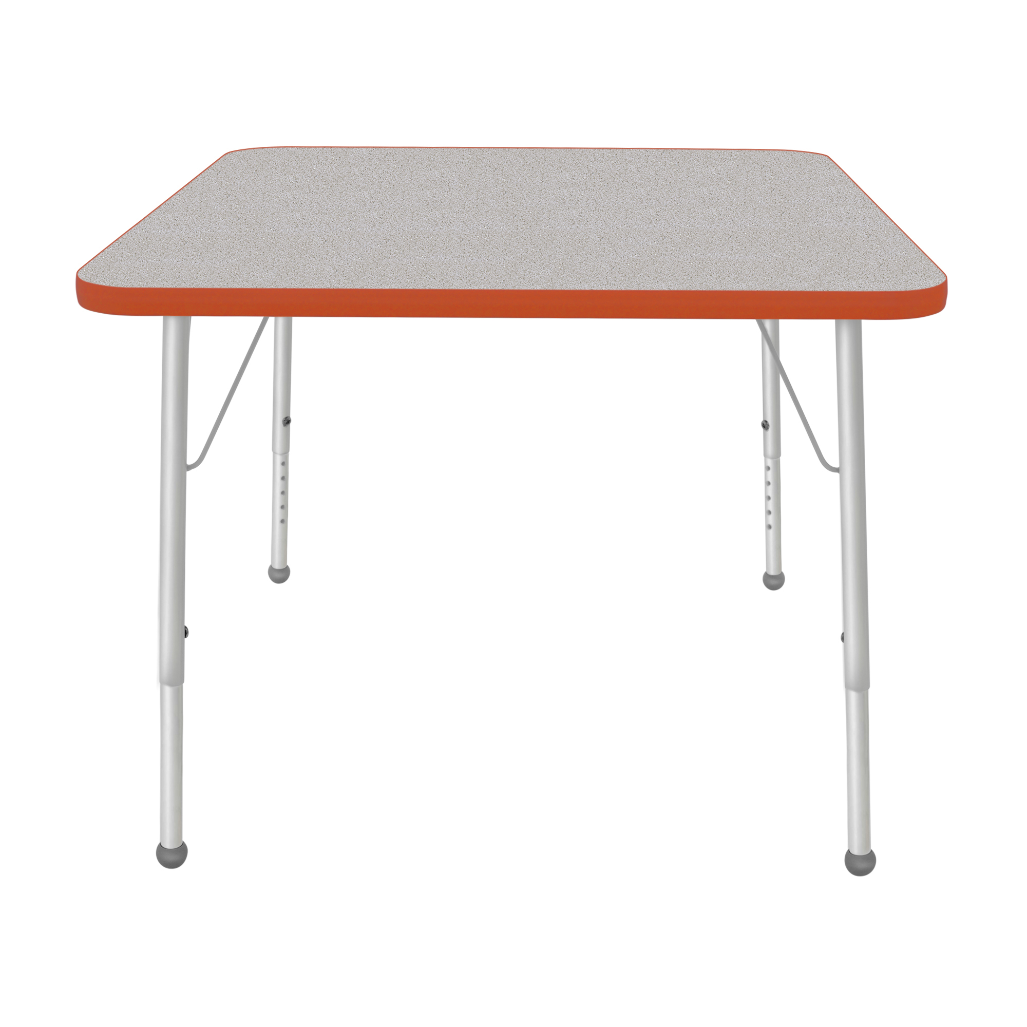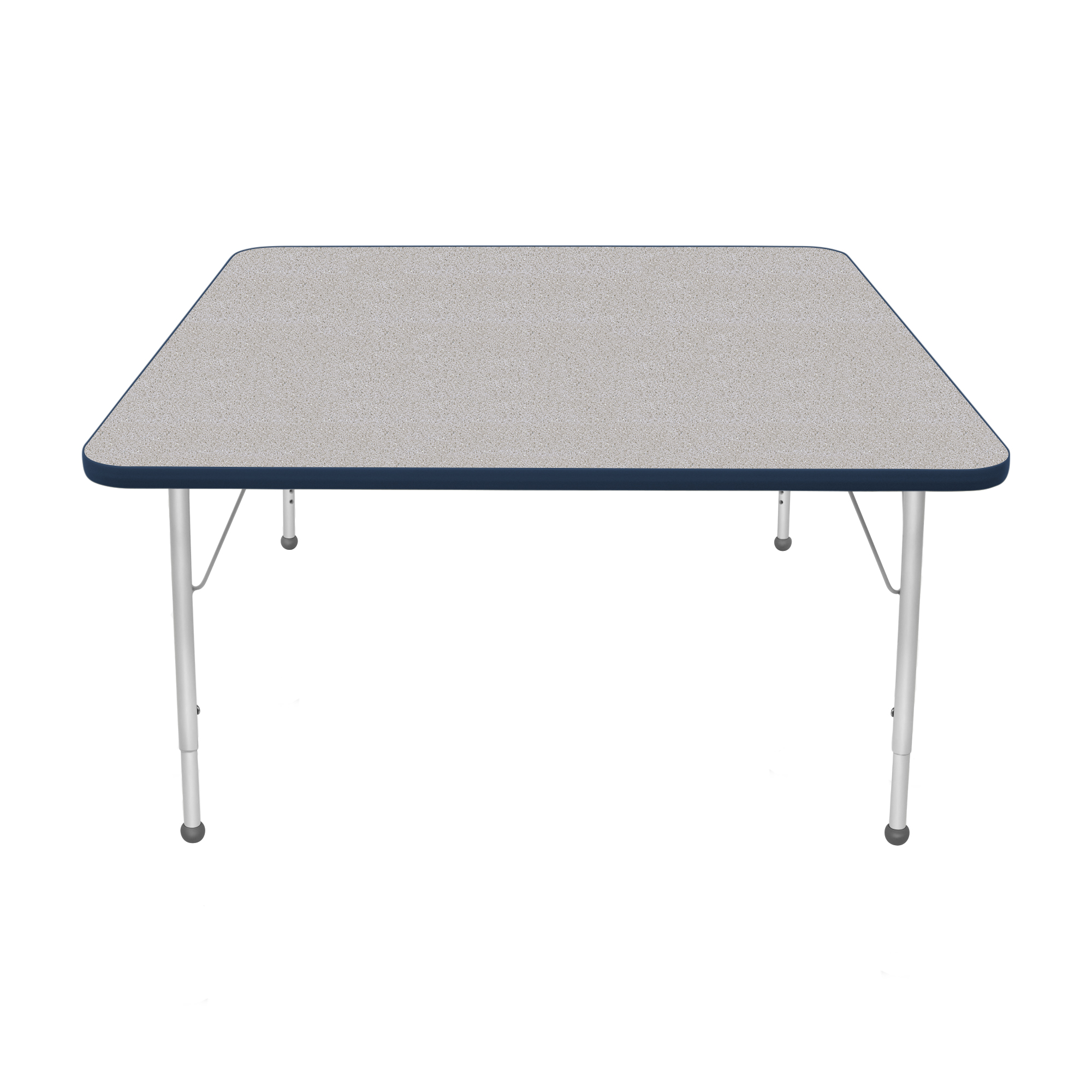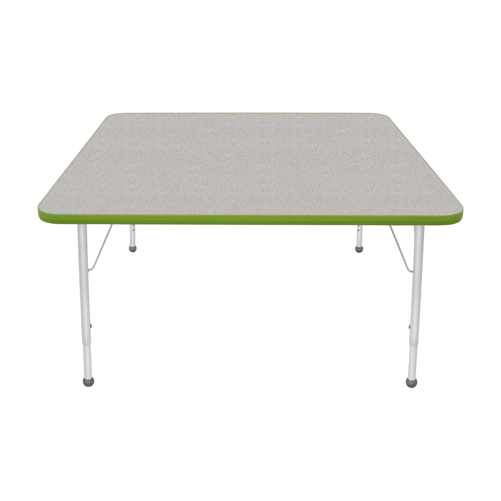 An attractively designed ECO-certified activity table focused on safety and durability. For a stain-resistant and easy to clean surface that is hard enough to resist chips and dings, the table top and bottom both feature a durable thermally fused laminate. The top is also finished with a wrap-around T-mold edge. Height-adjustable legs include a powder-coat finish on the upper legs and inserts. Platinum silver ball glides come standard as feet.